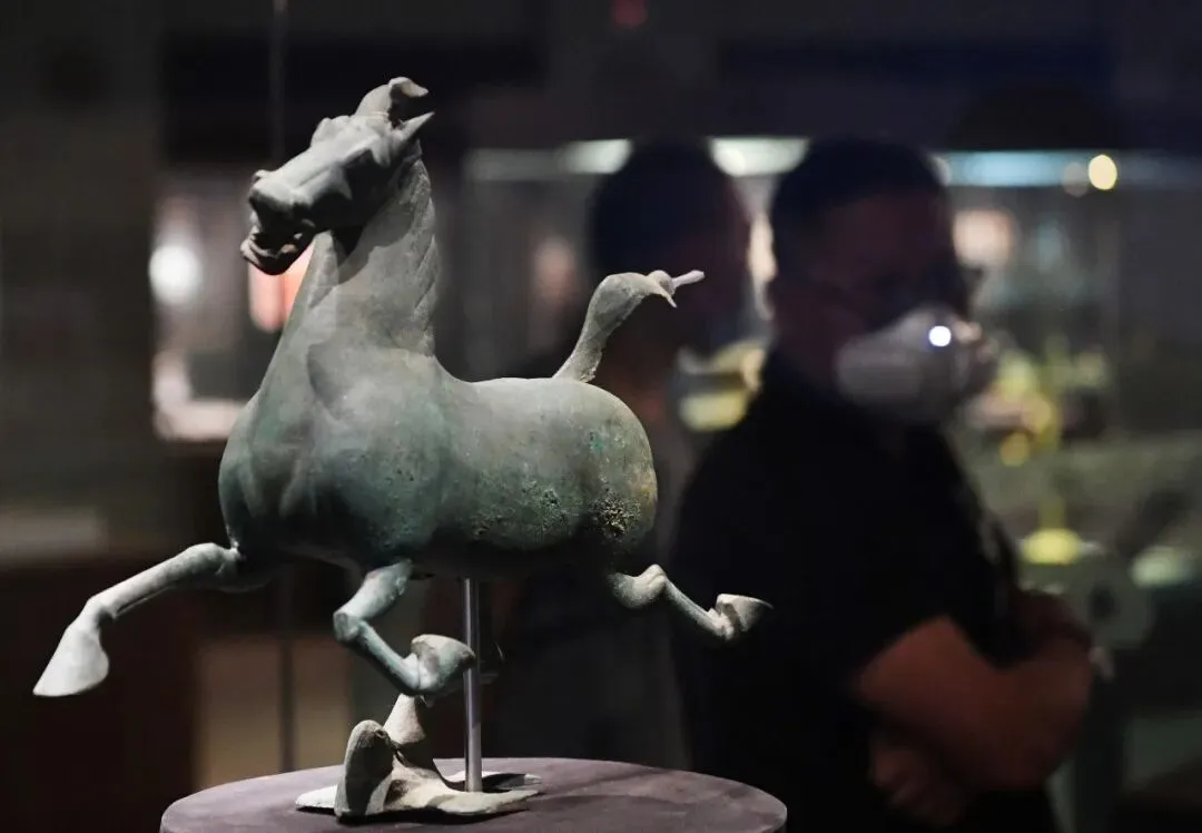 据现代考古研究,中国青铜铸造技术或由西方传入。集青铜冶炼工艺之大成的铜奔马,兼具东西方“优秀元素”。它,从来不是封闭王国的孤傲造像,而是文明互鉴的具象凝结。
