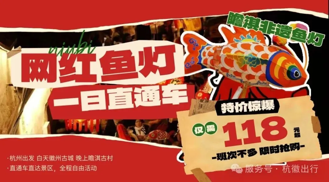 一条线路,串起两处流动的千年现场。徽州古城里,每一步都是与历史对话;瞻淇夜色中,每一灯都是被点亮的传承。乘专车往返,不必匆匆,只需沉浸——触摸砖墙的温度,聆听深巷的呼吸,感受鱼灯划过黑暗时的温暖光亮。这不仅是一次旅行,更是一场走入时光深处的温柔抵达。
