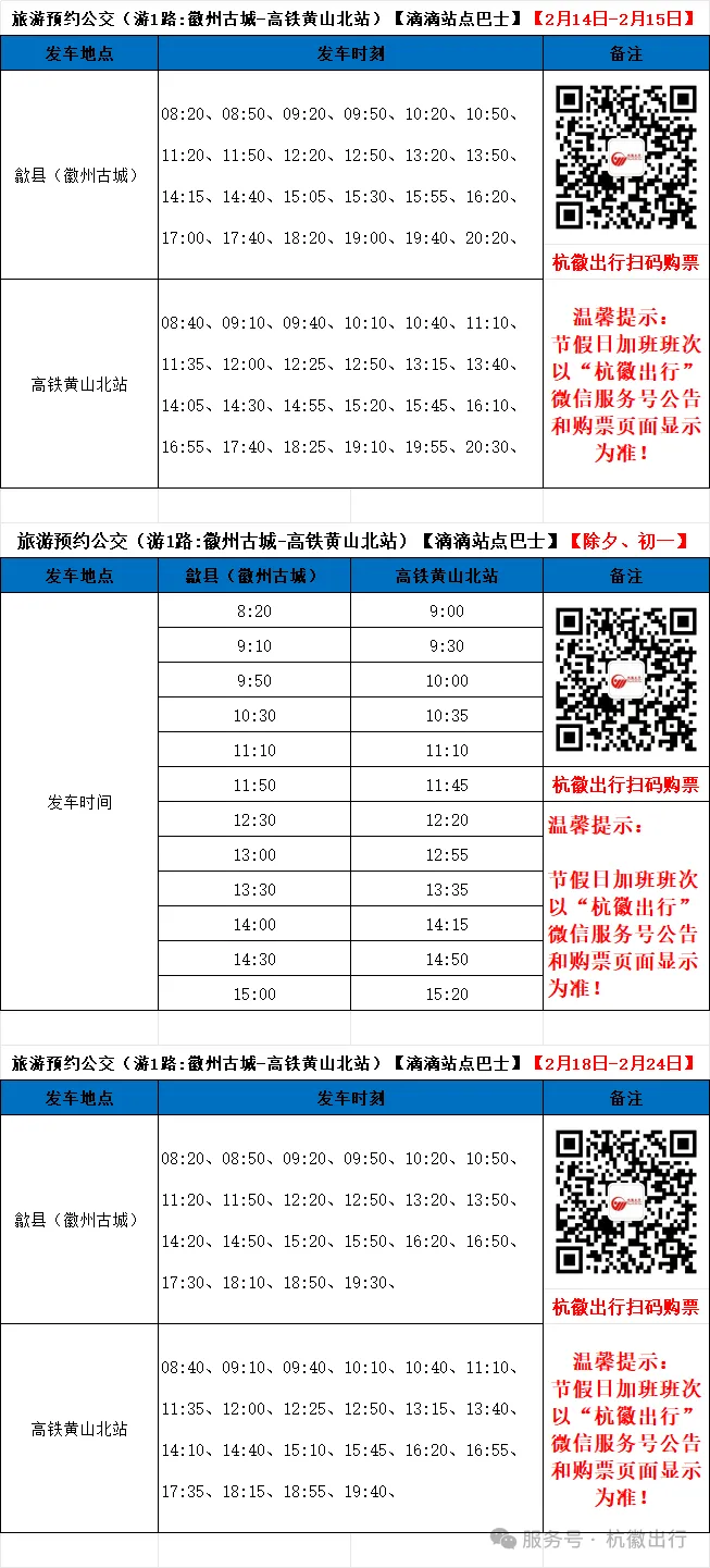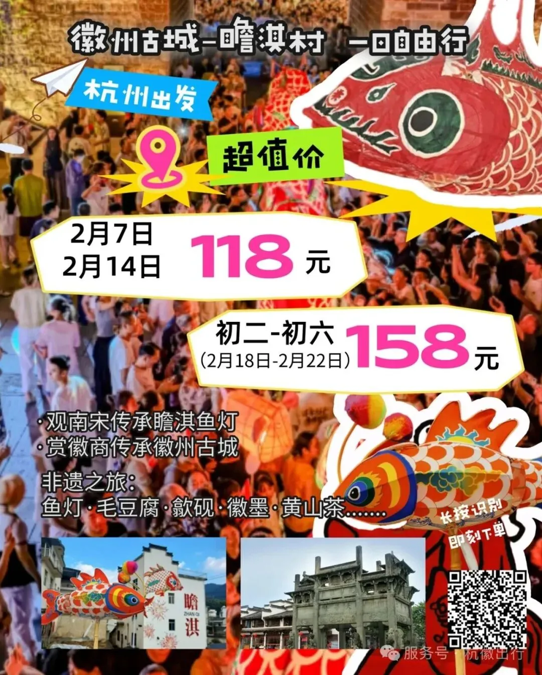 杭徽长运2026年春节旅游直通车合集|卖花渔村、黄山南大门、高铁黄山北站、徽州古城、瞻淇鱼灯…一站直达,说走就走!