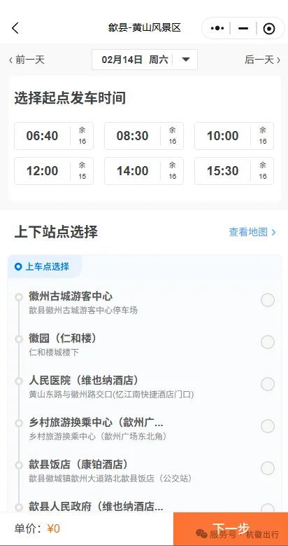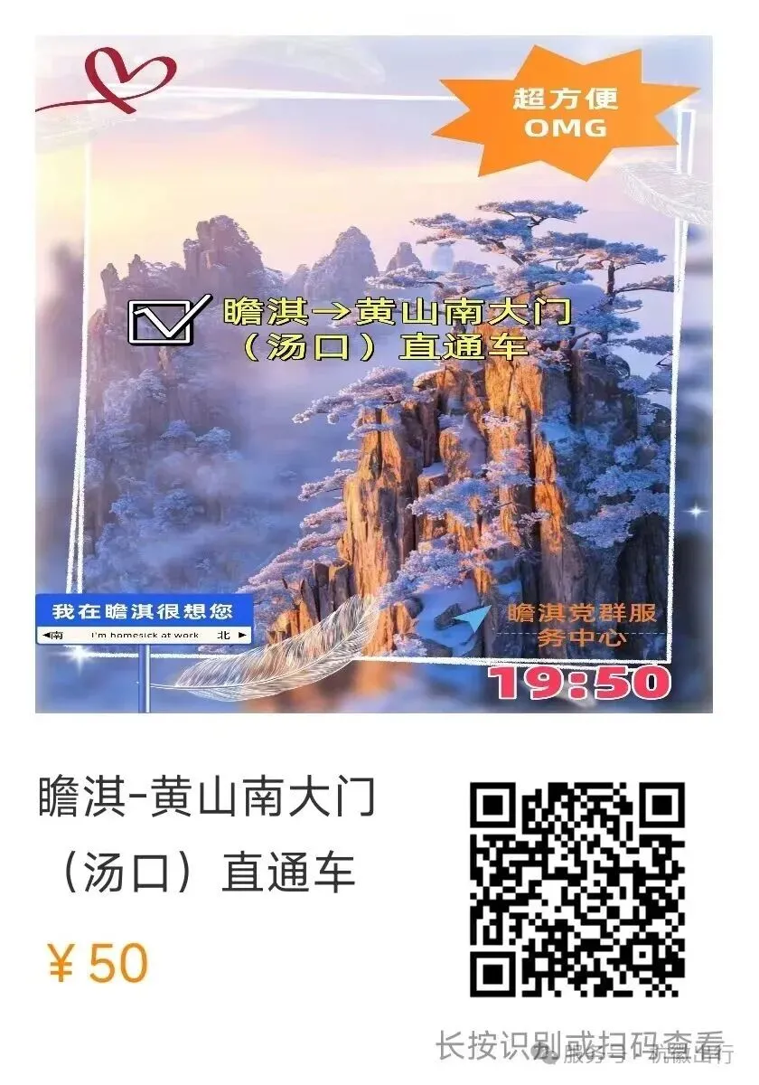 去程:徽州古城游客中心→瞻淇(2月14日、2月24-3月6日)