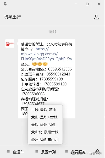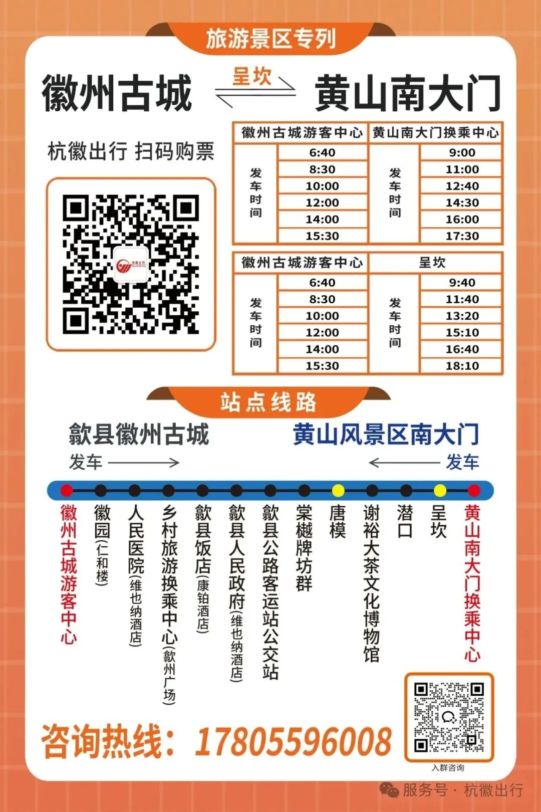 8.景区直通专线:徽州古城 ⇔ 黄山南大门