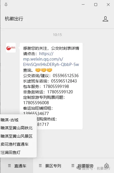 关注公众号了解更多旅游直通车资讯详情,如有其他疑问可拨打服务热线:17805596008