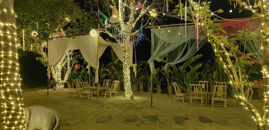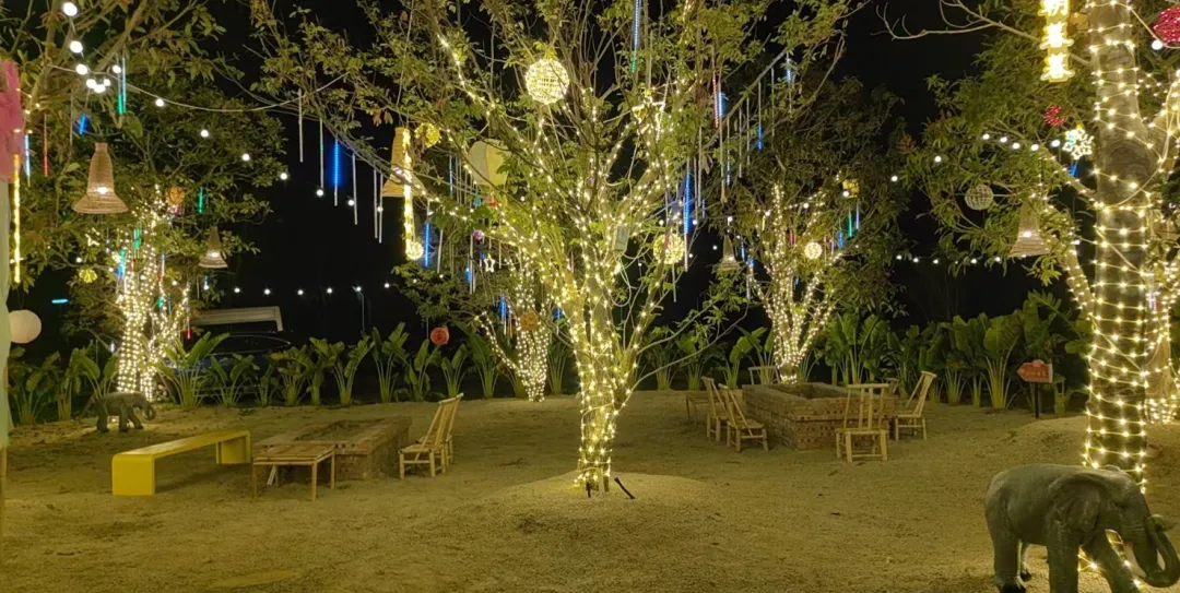 🌴 异域风情,沉浸体验不止于味觉。我们精心打造了泰式东南亚风情的围炉环境。温暖的木质结构、充满热带气息的装饰、慵懒舒适的坐垫……仿佛一秒穿越至清迈或苏梅岛的悠闲午后。这里与隔壁自然野趣的栖湾营地相映成趣,一动一静,让您在异国情调与自然生态之间,找到最惬意的平衡。