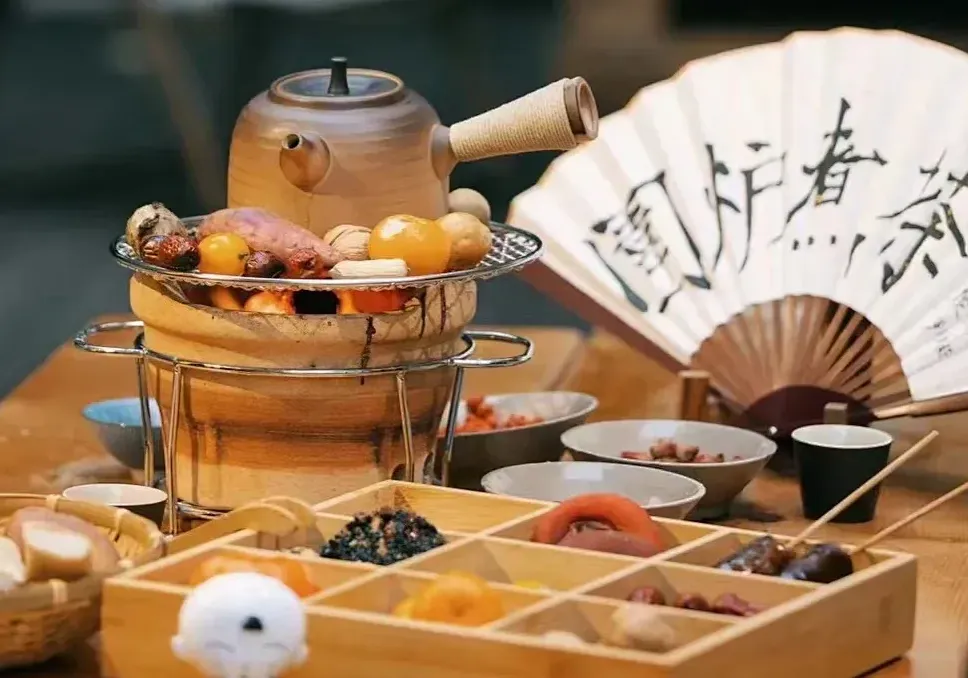 您亦可随心单点,从烤肉肠、小桃酥等暖心食品,到各式鲜果切片,再到花生、瓜子、年糕等怀旧小吃,更有普洱、六堡茶、小青柑茶等近十种精选茶叶可选。一炉之上,百味可调,温暖由您定义。