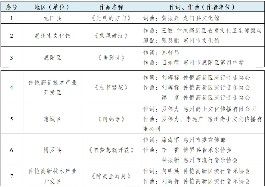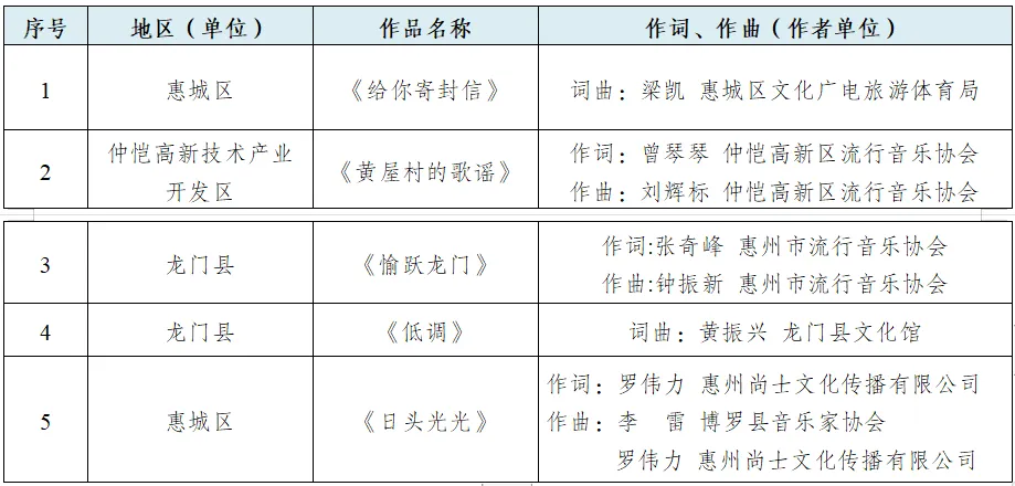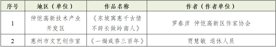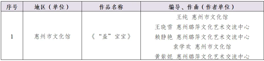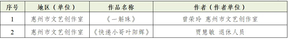 惠州市文化广电旅游体育局关于2025年度惠州市群众文艺作品评选结果的公示