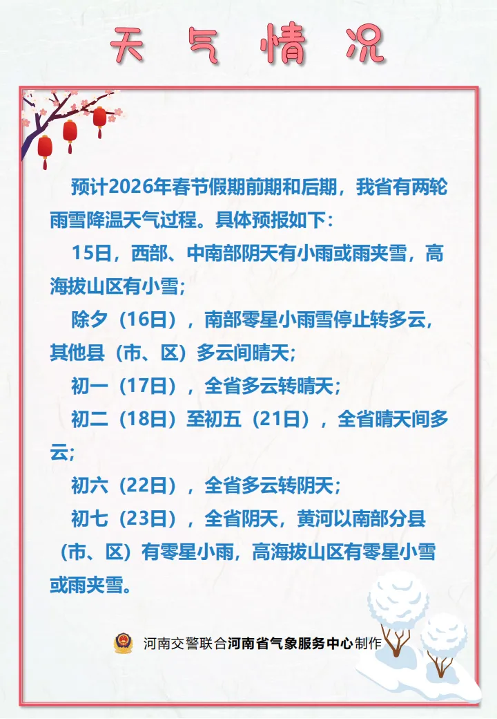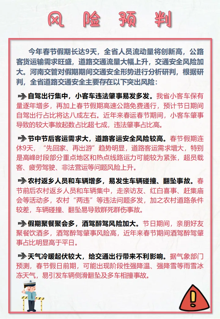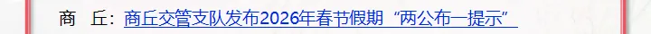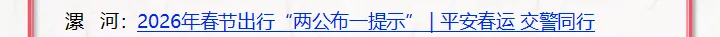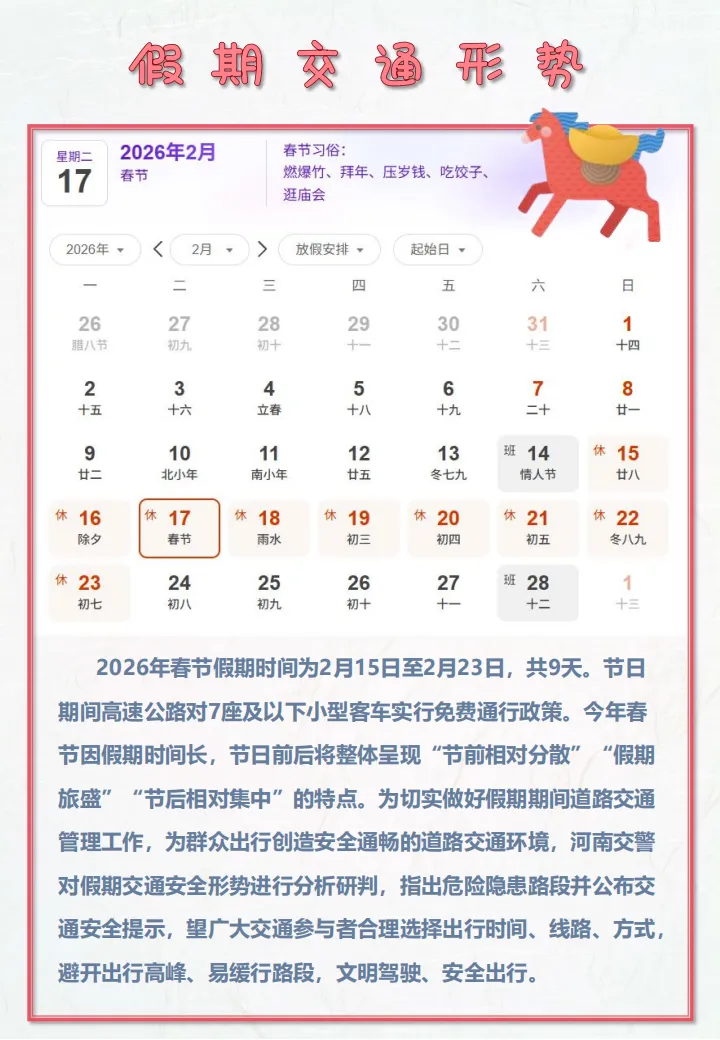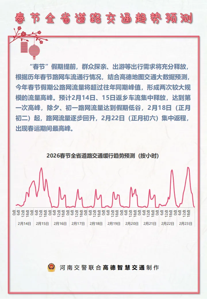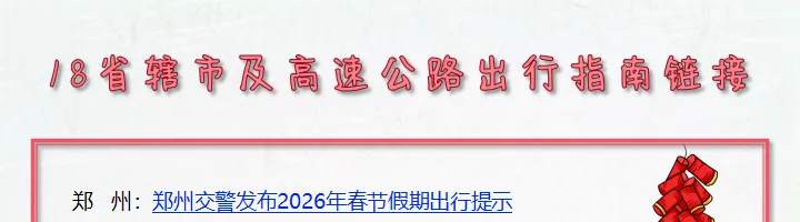 您现在的位置是:首页 > 国内旅游目的推荐 > 正文 国内旅游目的推荐 春节期间全省这些路段、景区可能拥堵,快来看最全出行攻略→ admin2026年02月13日 18:56:38国内旅游目的推荐8 春节期间全省这些路段、景区可能拥堵,快来看最全出行攻略→来源:河南省公安厅交通管理总队往期回顾这一违法行为已有22人被查!春运期间,安阳“轻微交通违法不处罚” 严厉打击酒驾醉驾免费停车!春节期间洛阳34家单位2000余个停车位对外开放→点分享点收藏点点赞点在看 转载请说明来源于"旅荐网",部分内容转载自网络,如有侵权请联系qlwl@foxmail.com删除 本文地址:https://www.15386.cn/post/105280.html 上一篇 【西安旅游】大唐不夜城 公布2026年春节假期&正月十五演出时间表 下一篇 别再挤网红景点了,这座千年小城,一进东湖就被治愈 相关文章 你的旅游产品说明书为什么总被投诉?看完这篇,下次不再踩坑! 连休3天��石河子游玩指南已为你安排! 福建环线经典7天自驾旅游攻略 福建自由行攻略 旅行计划 《旅游开发与规划》课程项目式学习成果汇报,专家企业共鉴学生飞跃成长 三亚旅游避坑指南|2026最新版,别让套路毁了海岛度假 夏河到郎木寺,无需攻略,说走就走! 6-7月最佳旅行季!探索甘南6大自然奇观:夏河、桑科草原、郭莽湿地、尕海湖、郎木寺! “金”日攻略|“跑游济宁 一路生花”济宁春日精品旅游线路,解锁孔孟之乡的诗与远方 《旅游避“坑”指南》 发表评论 取消回复 评论列表 这篇文章还没有收到评论,赶紧来抢沙发吧~