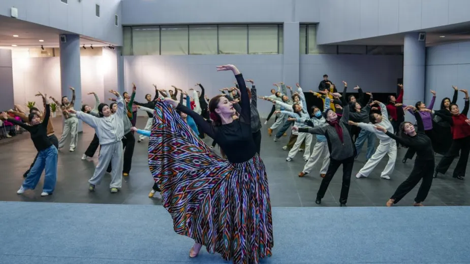 2月6日上午,一场别开生面的成果展示演出在江西省文化馆热烈的气氛中举行。经过培训的江西学员与新疆导师们同台献艺,共同展示了学习成果。婀娜曼妙的手腕动作、轻快灵巧的舞步、热情洋溢的笑容,伴随着极具新疆特色的动人音乐,现场化身为欢乐的海洋。江西舞者用真挚的演绎,表达了对新疆文化的理解和喜爱,展现了赣新两地人民心手相连、情感交融的动人画面。
