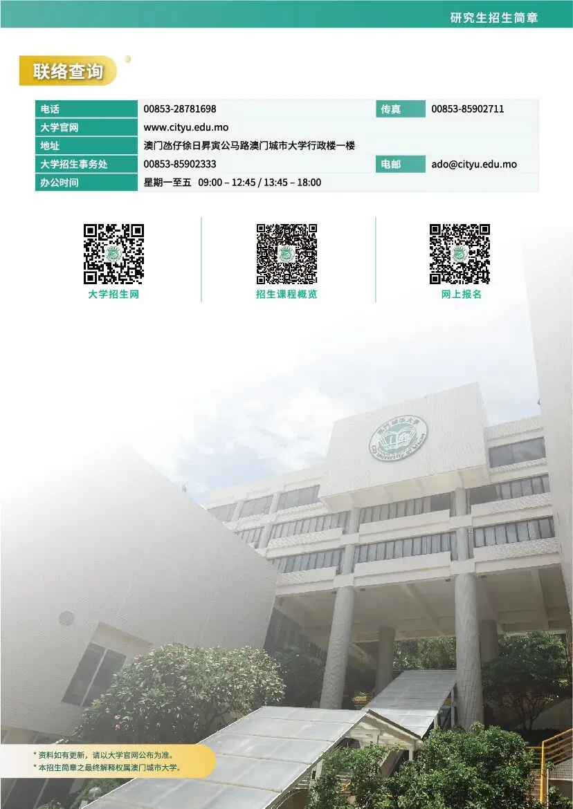 想了解完整申請資訊、專業介紹與報名流程,歡迎前往學校官方網站(www.cityu.edu.mo)查詢詳情。