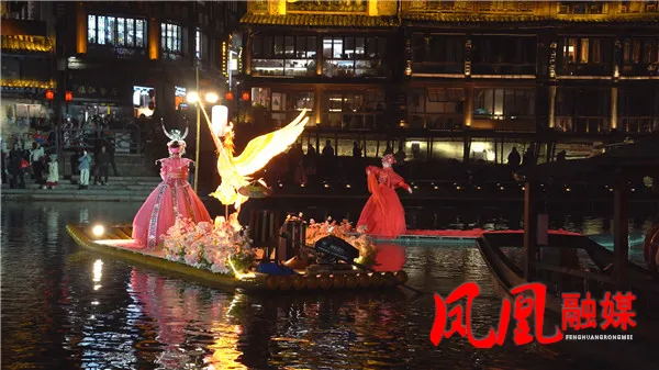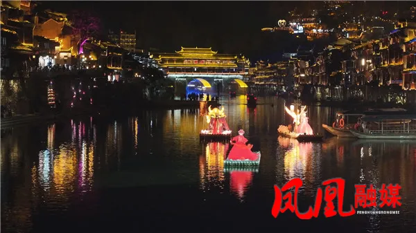 夜幕降临,沱江两岸灯火璀璨,北门码头、吊脚楼、虹桥等景点在红灯笼与景观灯映衬下更具古韵。非遗快闪、夜间巡游、沉浸式情景演绎等夜间核心节目一一登场。