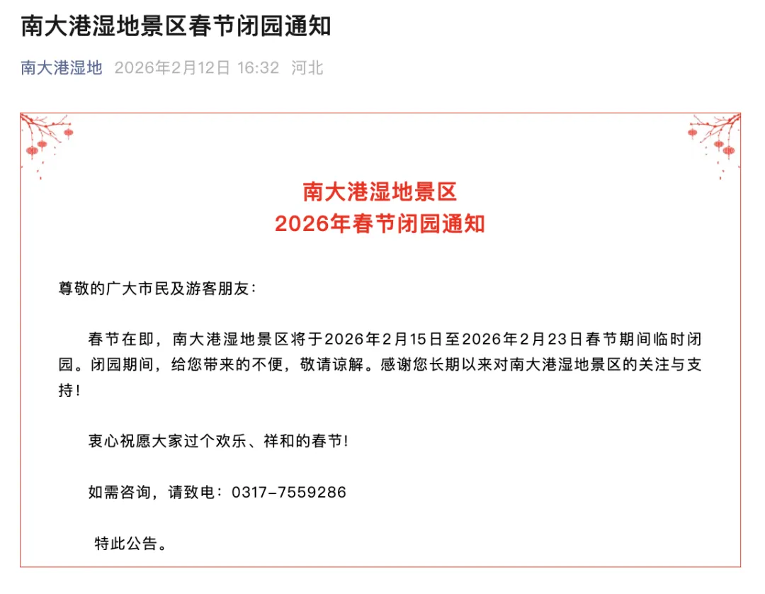 游览时间:2026年2月15日—2月23日(春节放假期间)。