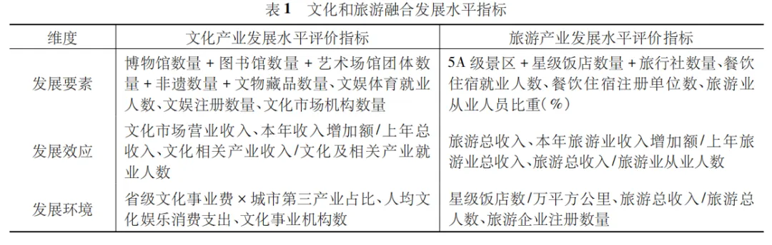综上,学界关于文化消费与旅游发展已有诸多有益探索。然而,文化消费对旅游的影响,尤其是文化消费政策对旅游目的地绩效的影响,在中国情境下尚未得到充分证据支持。既有研究多聚焦于文化消费对旅游收入、旅游人次等单一经济影响,忽视了文化消费可能带来的多维度、深层次影响。此外,相关研究多集中于市场需求方面,而对供给侧因素及政策相关问题的探讨相对不足。自2016年起实施的国家文化消费试点城市政策,为探索文化消费与文旅融合的互动关系提供了理想且可靠的样本。基于此,本文利用中国270个地级市2010-2019年的面板数据,采用双重差分法测度文化消费试点政策对区域文旅融合发展的影响。值得注意的是,双重差分模型在旅游领域的应用仍相对有限。本文贡献在于:第一,系统剖析文化消费与文旅融合之间的内在联系,为文化旅游领域的量化研究增添新的理论视角和实证依据。第二,从发展要素、效应和环境三个维度,量化评估2010-2019年270个地级市的文旅融合发展水平。第三,将文化消费试点政策作为外生政策冲击,使用多期双重差分模型,以期科学、量化地评价文化消费政策对文旅融合发展影响的净效应,并进一步探讨其异质性特征,为政策制定者提供具有针对性和前瞻性的建议与启示。