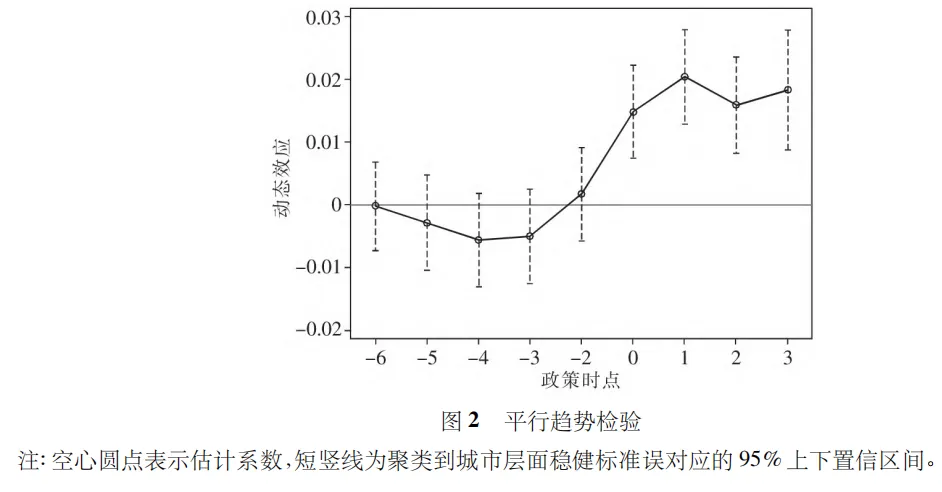 本文将国家文化消费试点城市政策作为一项准自然实验,以城市虚拟变量与政策实施时间虚拟变量的交互项表征文化消费试点政策的政策处理效应。具体地,本文将国家文化消费试点城市作为处理组设置为1,将非试点城市作为对照组设置为0;将试点政策实施前后的时间虚拟变量分别设置为0(政策前)和1(政策后)。