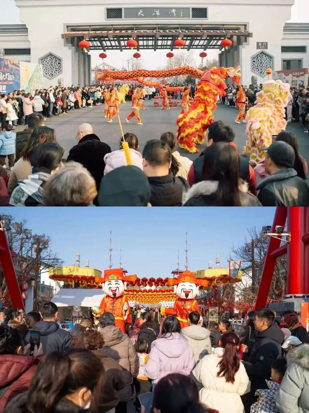 假期期间,舞龙舞狮迎宾,变脸、喷火等表演精彩纷呈,将新春的热烈氛围瞬间点燃。
