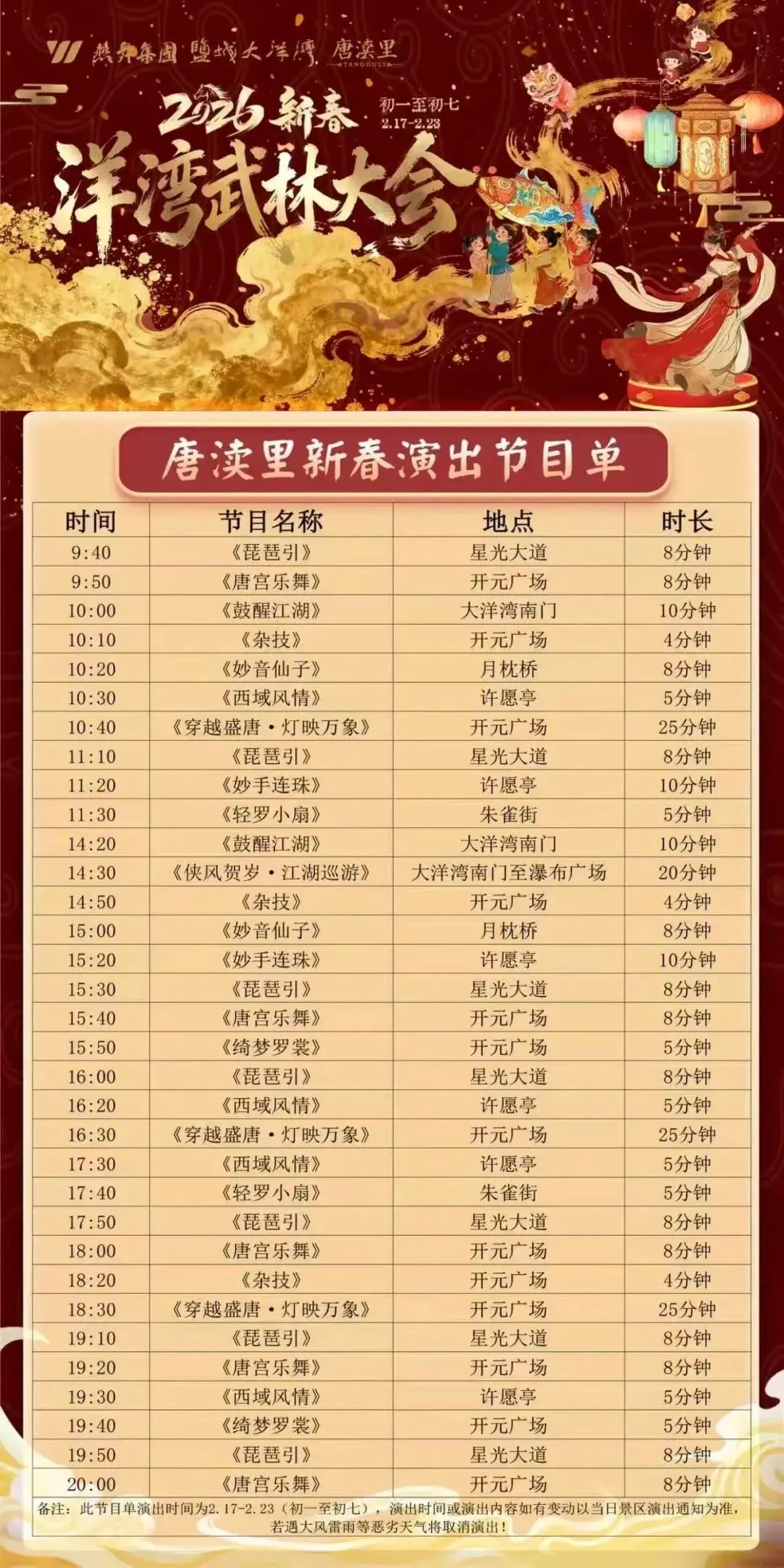 活动时间:2月17日至21日,每日上午、下午各一场,自起飞至降落约20分钟