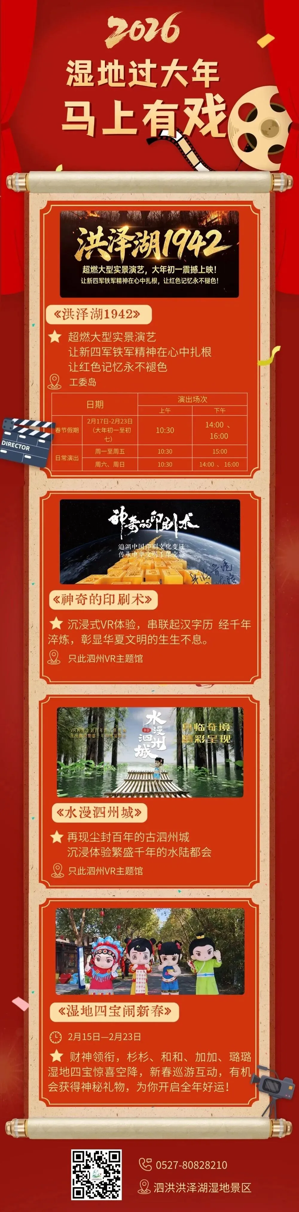 今年春节,泗洪洪泽湖湿地景区好戏连台,大型实景演艺、巡游互动等接连上演,带你过个红红火火的文化年!滑动下图查看众多精彩活动。