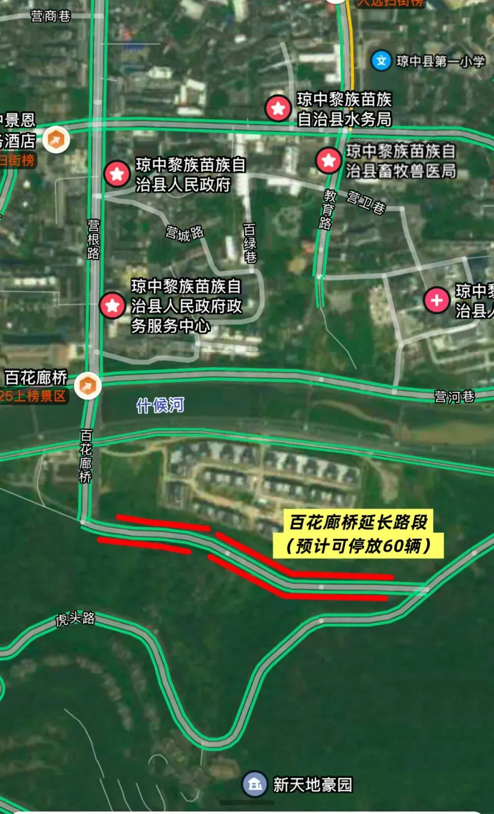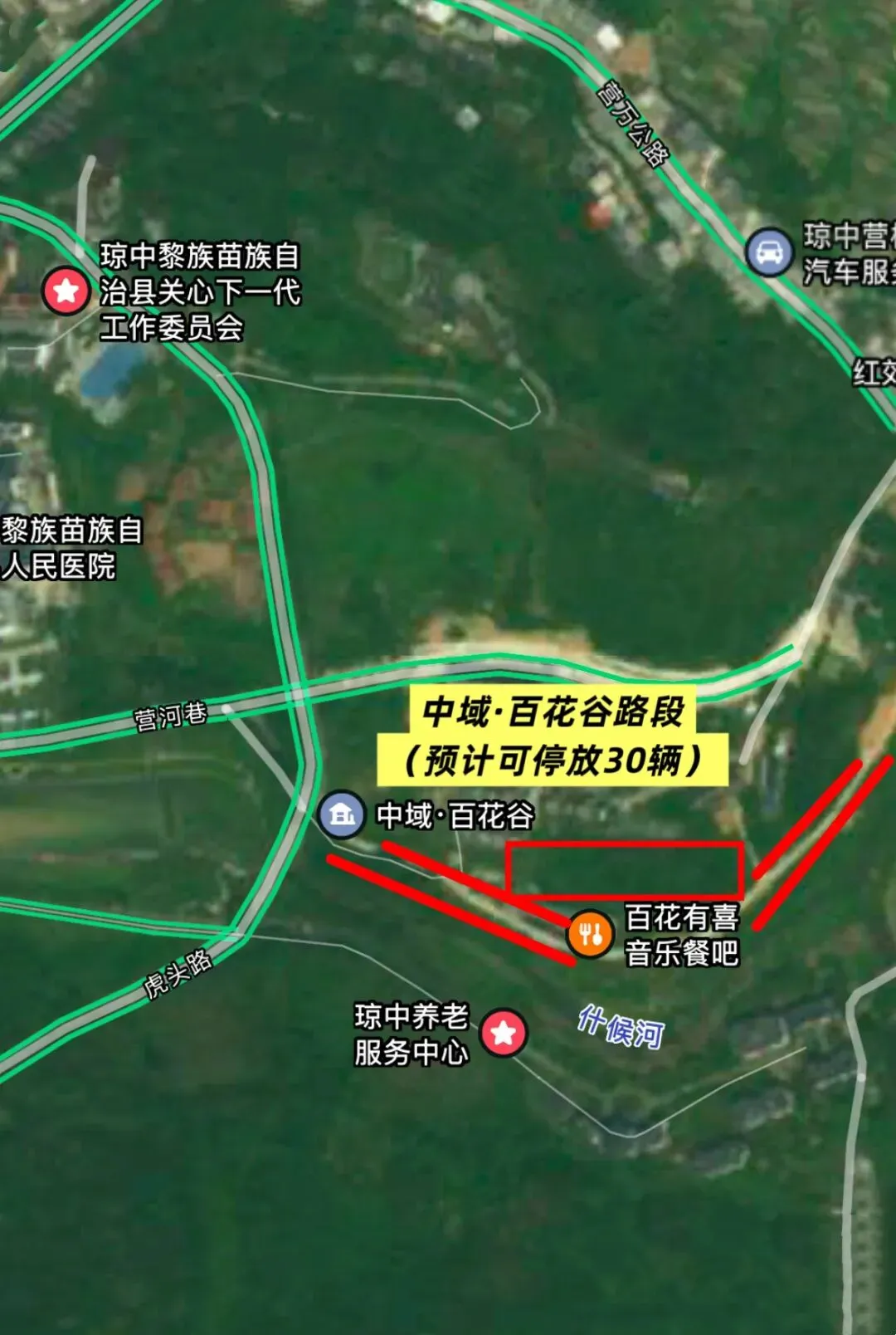 【1】百花岭景区门口至百花大桥路段,全长约5公里,转弯处禁止停放车辆,单边停车预计可停放650辆。