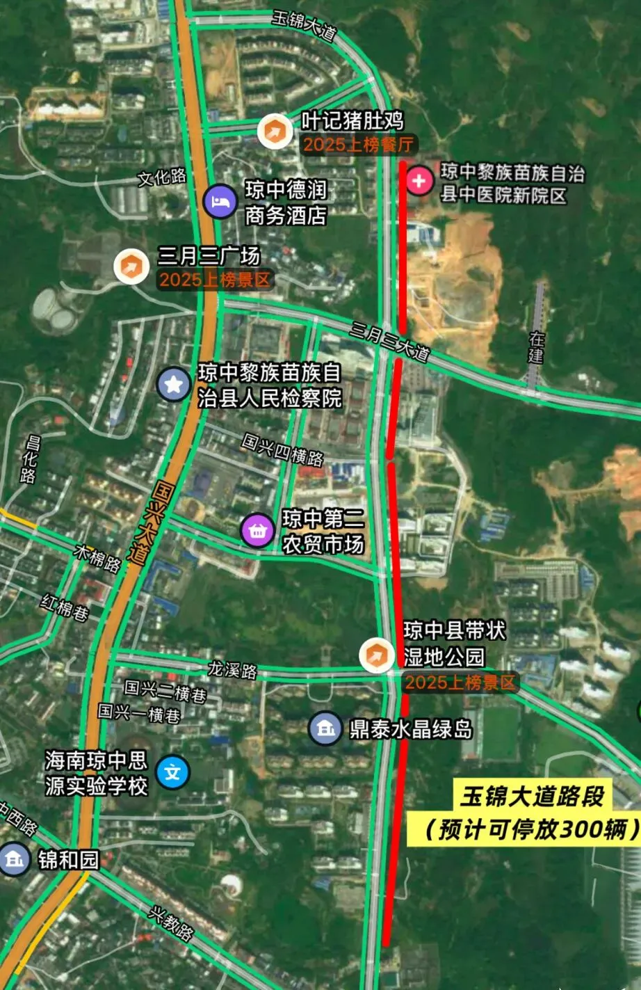 【2】玉锦大道路段长约2公里,可单边停放车辆,预计可停放车辆300辆。