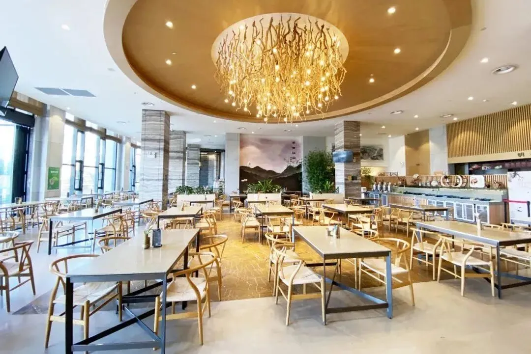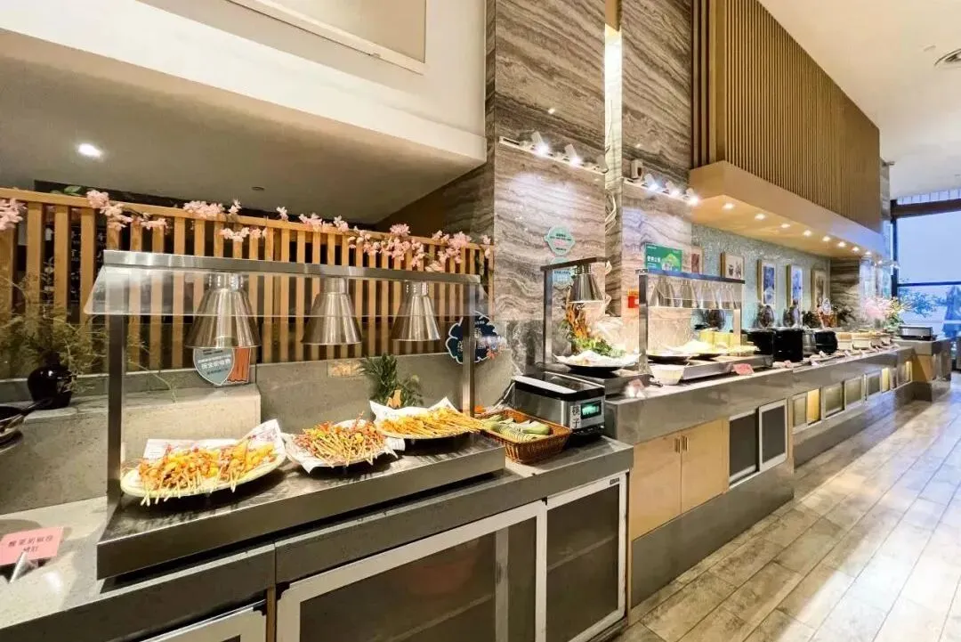 玩到累了,就在离子含量约达8000个/cm³的高山茶园中就餐。在自助餐厅内,不仅能180°饱览山湖美景,更有超多佳肴任性吃~