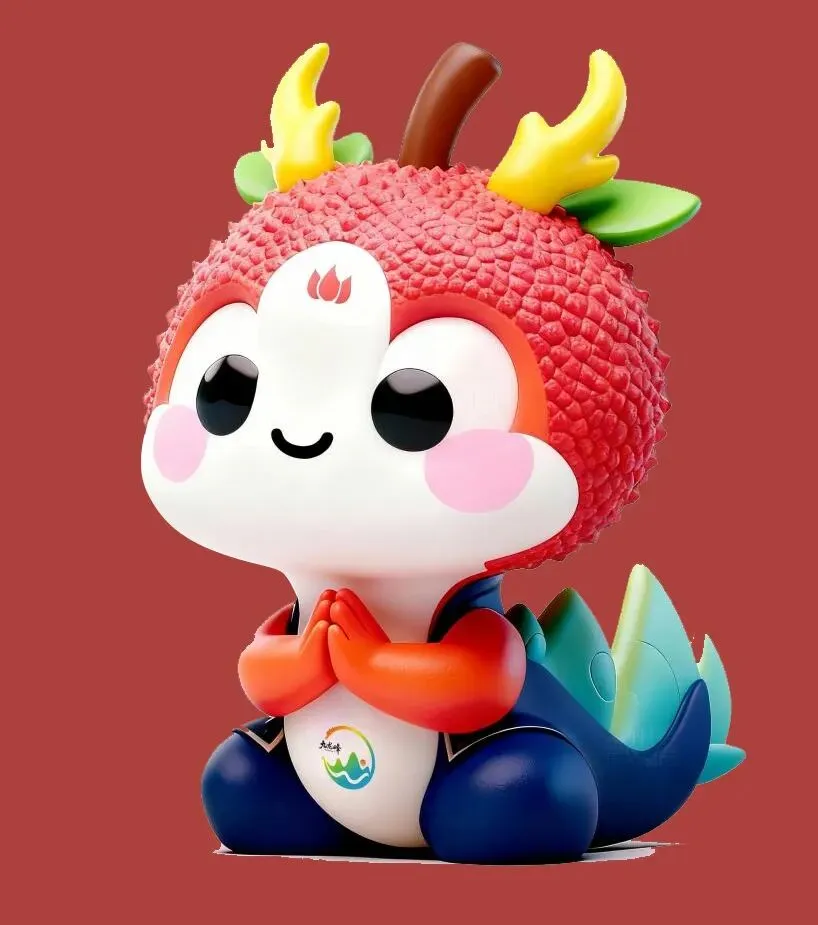 龙,源自“九龙峰”的古老传说,象征着祥瑞、好运;荔枝,是本地最甜美的风物名片,寓意富饶、丰收与待客之诚。当龙之灵气与荔枝的甜蜜结合,便化作了这个活泼可爱的龙宝宝。