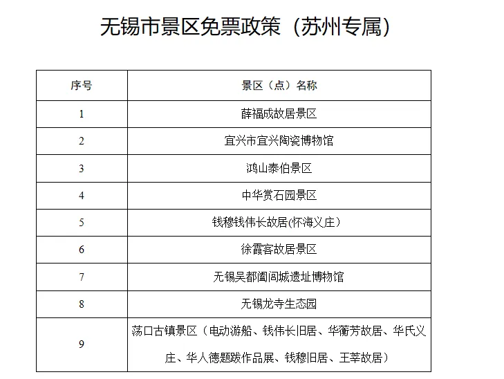 9大景区对苏州游客免票开放,薛福成故居、荡口古镇、宜兴陶瓷博物馆、阖闾城遗址博物馆等悉数在列;