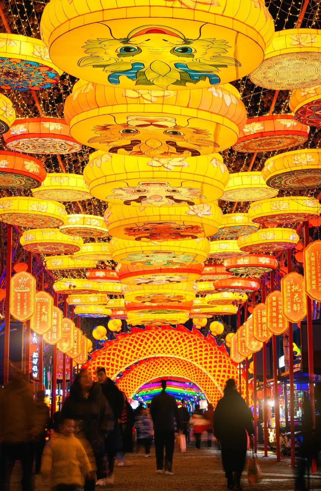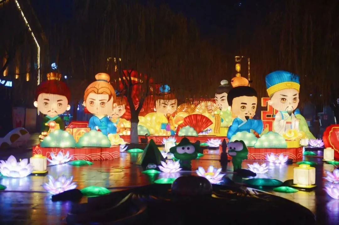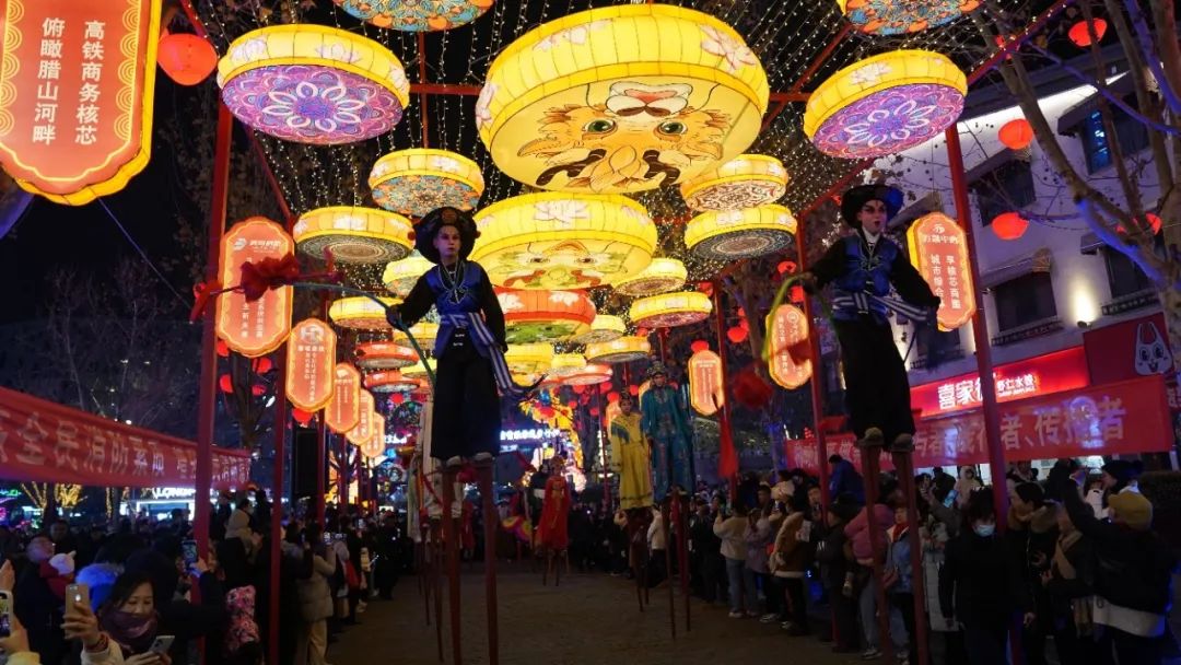 春节期间,印象济南泉世界为广大游客早早点亮“泉城最美花灯”,举办“寻龙耀彩中国年”活动。两条近百米的巨龙花灯,孔丘、大舜等十余位齐鲁历史文化名人花灯,千余盏盘龙挂灯入夜绽放,璀璨耀眼,红火喜庆。舞龙表演、曲山艺海民俗演出、民俗扮玩踩高跷、非遗传习手工展示等年俗活动精彩不断。日均7万游客的流量让这里成为济南最有国风年味的五星打卡点。