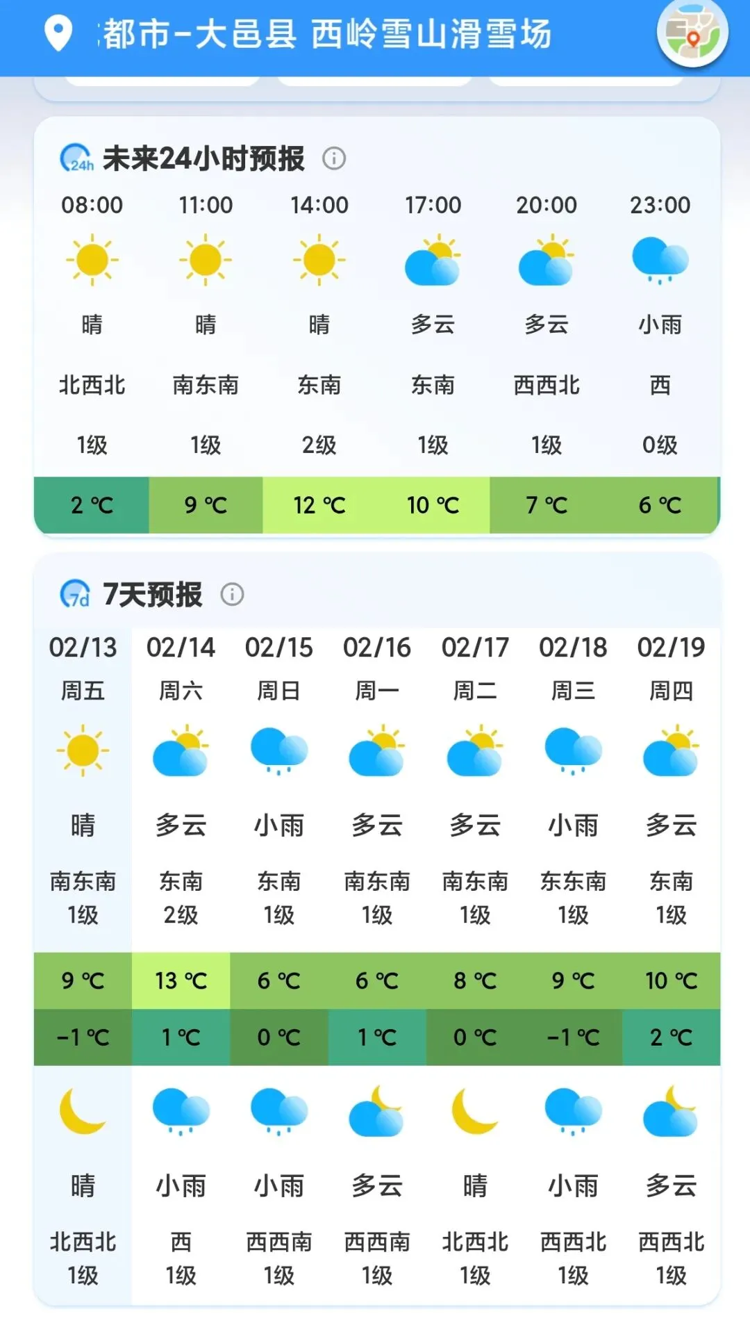 西岭雪山景区2月14日(周六)气象预报01