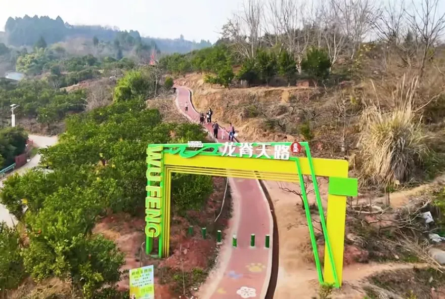 成都龙脊天路,是藏在龙泉山脉龙骨山脊的徒步线。线路如其名,步道沿着山脊延伸,起伏的果园、村落尽收眼底,天气晴好时还能远眺沱江如带。因全程无高大乔木遮蔽,视野极尽开阔、坡度平缓,所以非常适合春节期间全家出游。既能锻炼身体,又能欣赏沱江与龙泉山脉的壮丽景色。主线全程无台阶、无陡坡,婴儿车、平衡车都能畅行,是少见的无障碍轻徒步线。