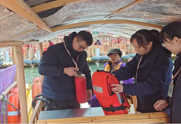 会后,在公司总经理廖浩的带领下,景区迅速组成安全生产检查组,深入景区各码头开展节前安全生产大检查、隐患大排查工作。