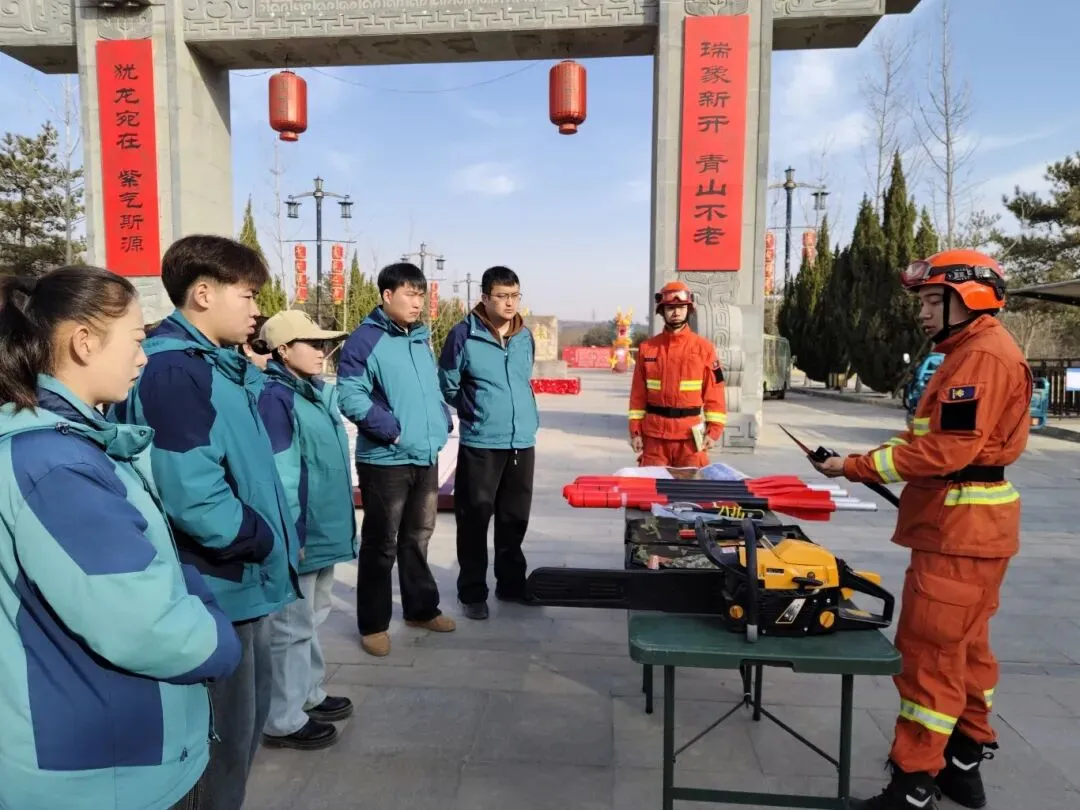 活动现场,消防宣传人员以定点宣讲的形式,在景区入口向过往游客及景区工作人员发放森林防火宣传手册,并现场展示各类常用消防器材。为打破“远距离观看”的局限,宣传人员邀请大家零距离接触、亲手操作体验,一边演示器材使用流程,一边细致讲解适用场景与注意事项,确保大家听得懂、学得会,切实提升全员防火实操能力与应急处置水平。