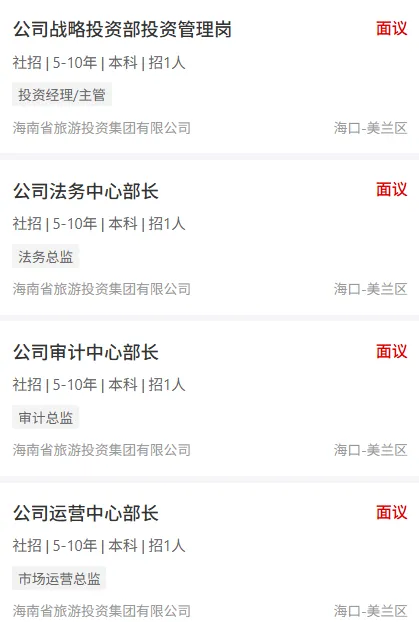 海南省旅游投资集团招聘工作人员!