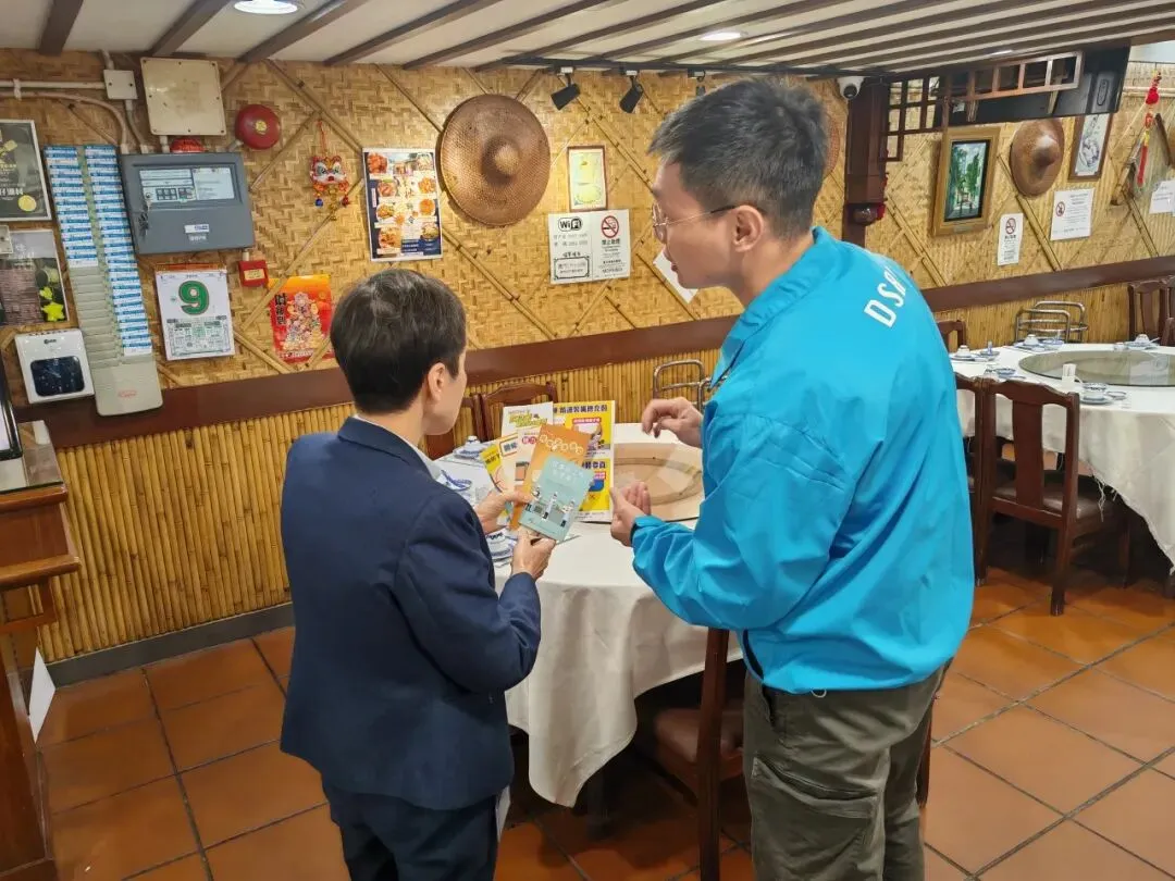 勞工局人員到食肆宣傳工作安全信息