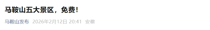 马鞍山五大景区即日起至3月31日,对全球游客免费开放。