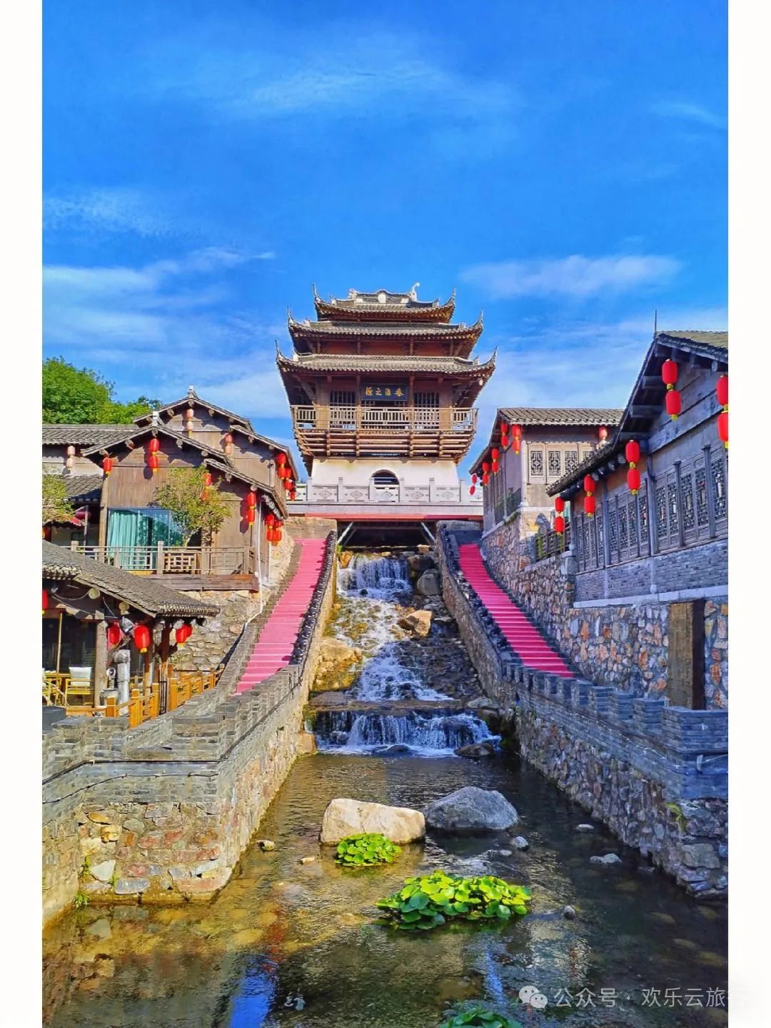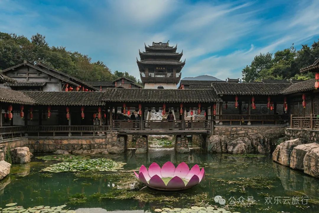 千华古村是一座位于句容宝华山脚下的仿明清古村,古村中为游客展现了三百年前的康乾盛世时期黎民百姓的生活全貌。西洋镜、镖局、手工织布机、袖里藏金、钱庄、木偶戏、杂耍”等都在这里一一呈现,让人仿佛穿越到了明清时代。沿着河道走,两边的吊脚楼,鳞次栉比,在蓝天白云的映衬下,这一切彷佛赋予了生命。夜景也非常美丽。