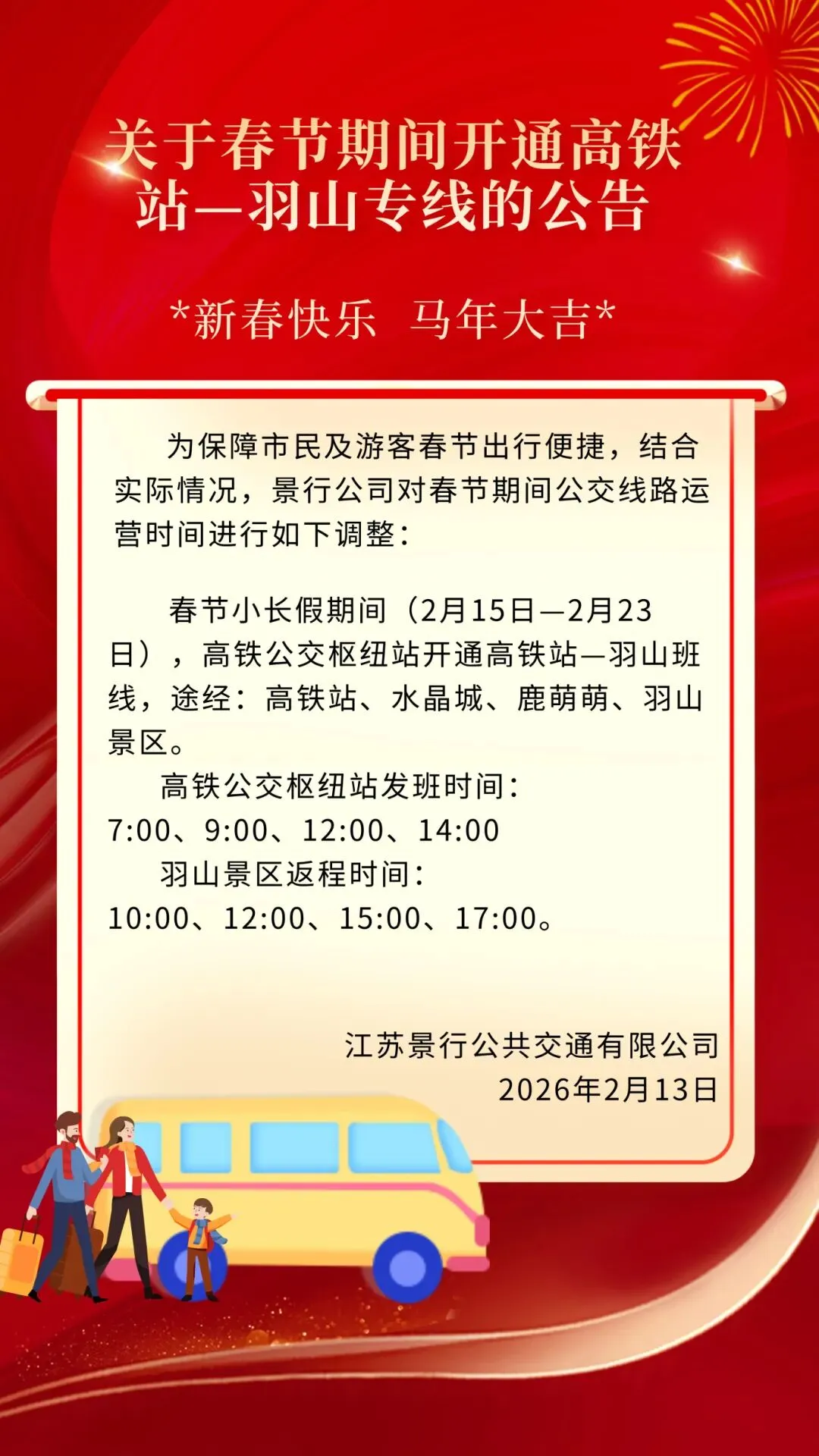 羽山景区“春节”新增公交线路及交通安全出行指南