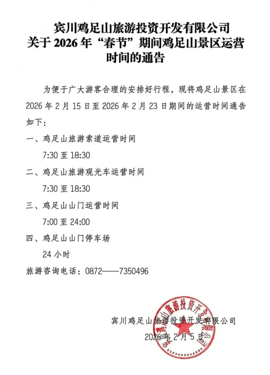 新春将至,年味渐浓。2026 年春节假期即将开启,一直以来鸡足山都是大家春节出游,登高纳福、邂逅山水的首选,景区已备好满满年味与美好景致迎接八方游客。为了让您的行程更顺畅、游玩更舒心,特将景区春节运营时间、交通管制信息告知如下,快收藏这份重要信息,开启您的新春美好旅程吧!