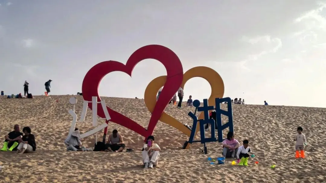 傍晚去“沙水交界”的高点等日落,金线一压下去,整片地都在发光。