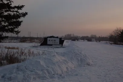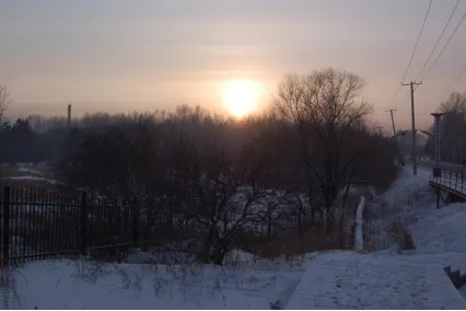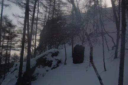 出了浴室就去探寻泉眼。经人指点,来到了工人疗养院的后门,又是一大片白皑皑的雪原。要过一道坎,连爬带滚的两次才登上。踏着雪地过去,迟迟没有找到泉眼。看看样子不像,就找到一条雪径返回。