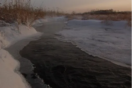 冰中有水,而且在-30℃的气温下。实在难得一见。