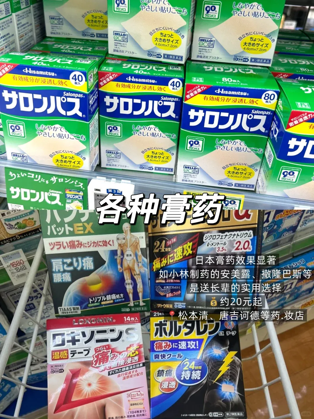 日本膏药效果显著,如小林制药的安美露、撒隆巴斯等,是送长辈的实用选择