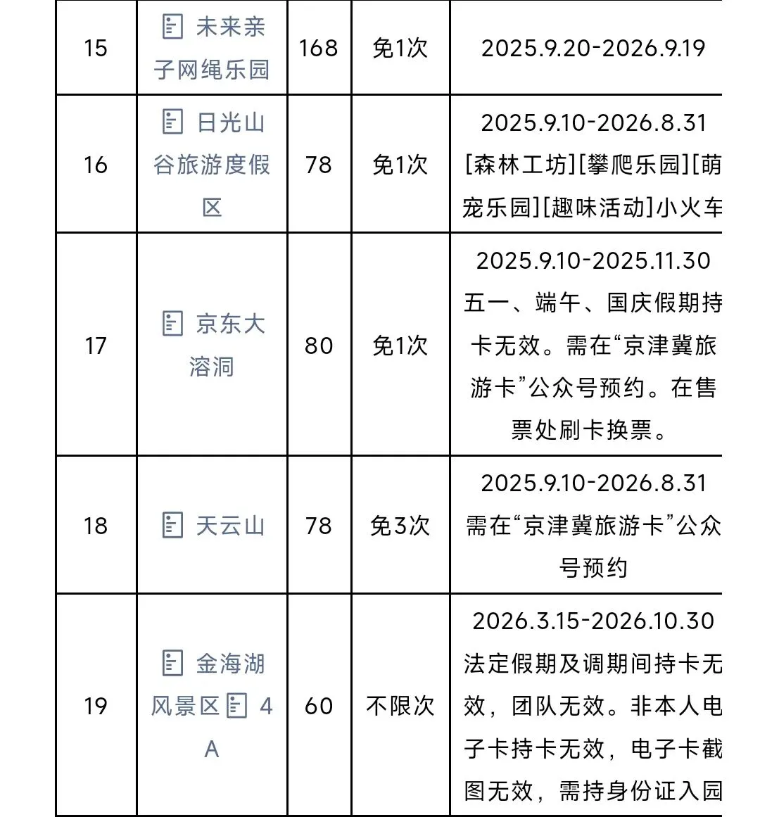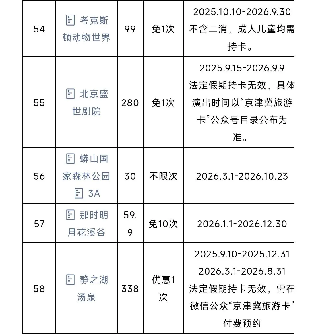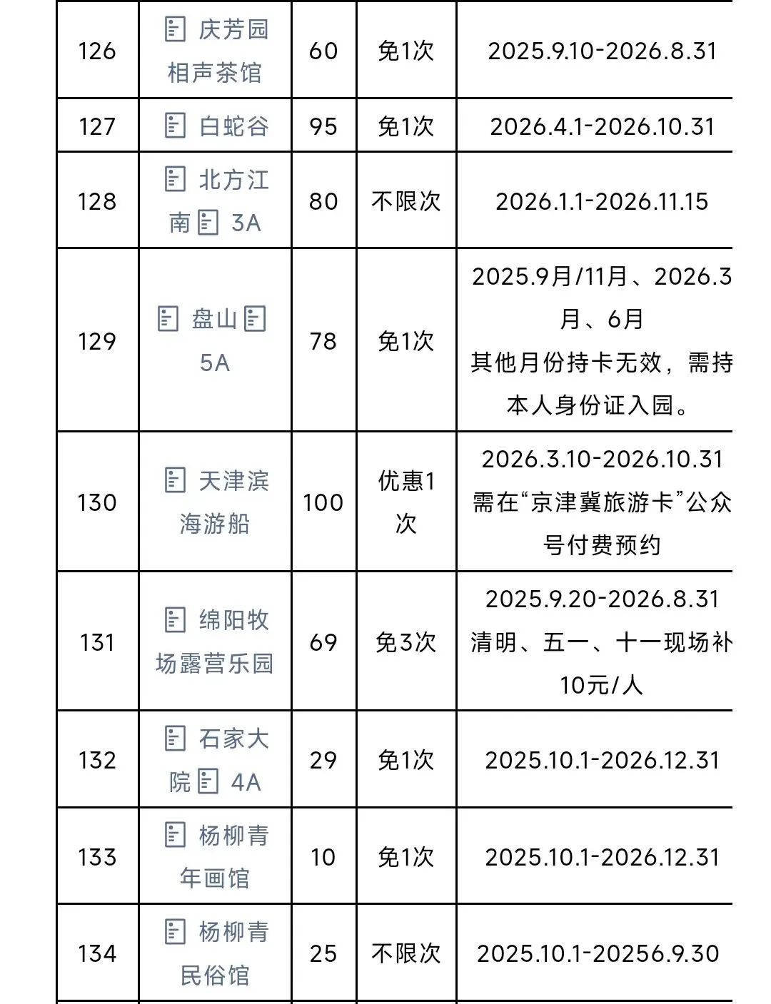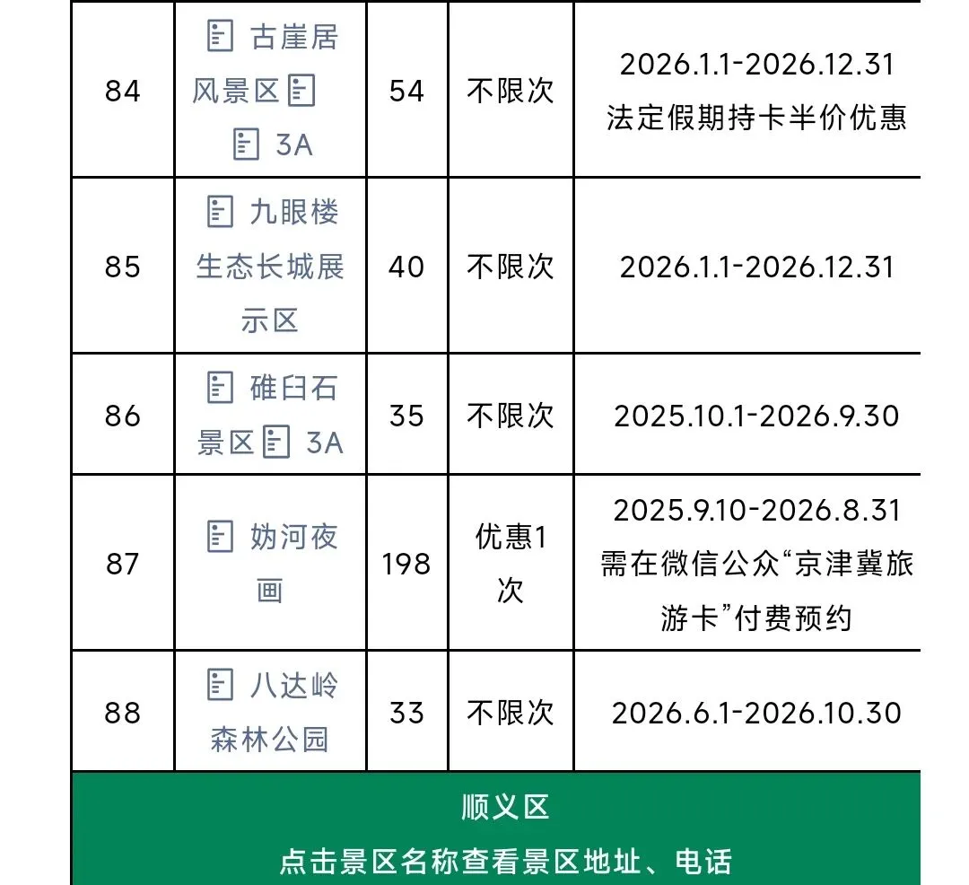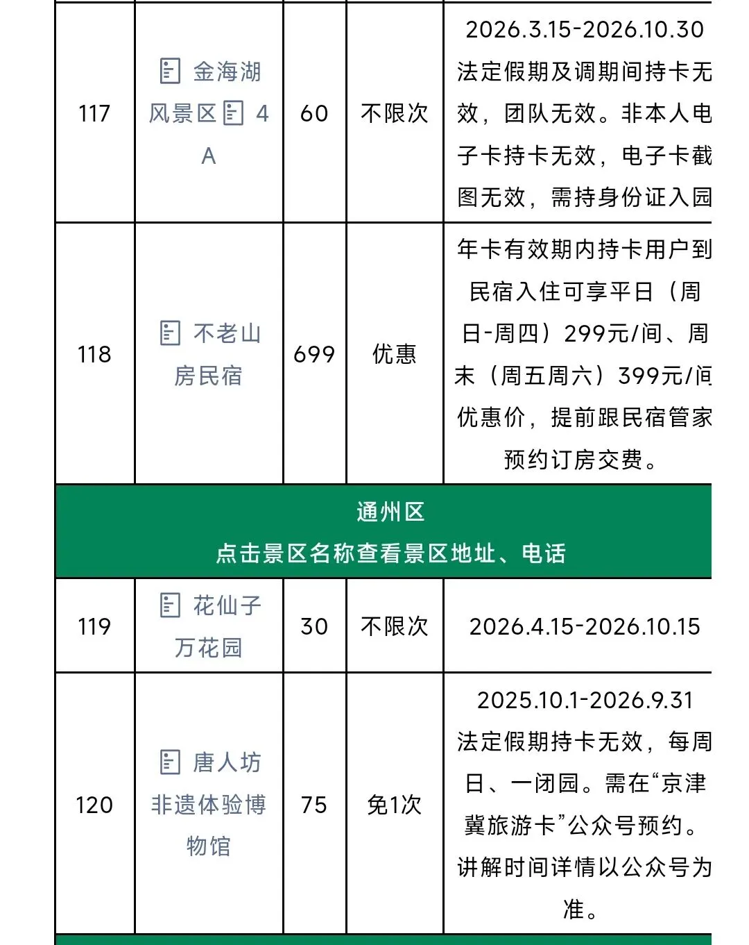 2026新版年票,京津冀旅游一卡通普通版景点目录,买一送一,99元到手2个,去一个就回本,简直太值了。