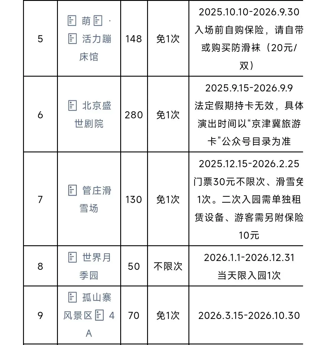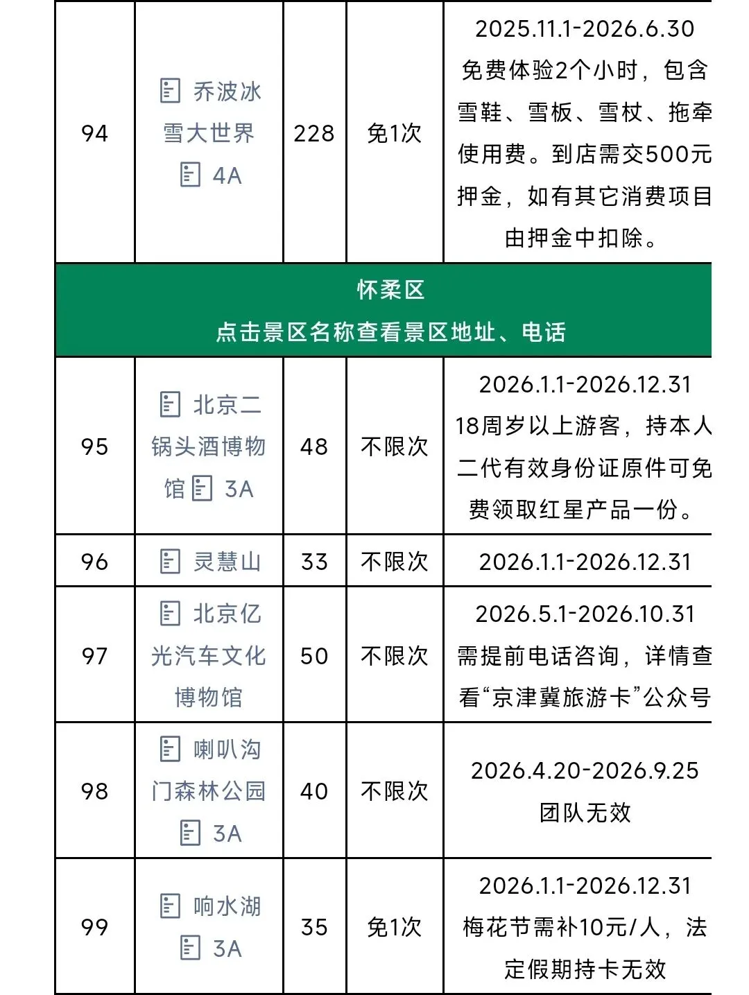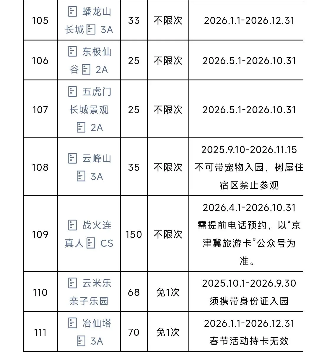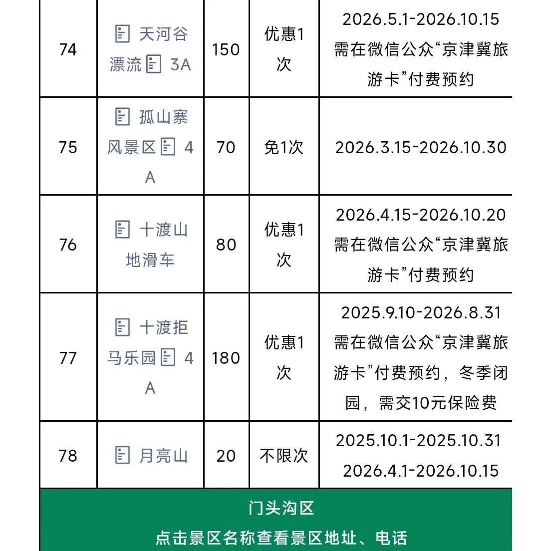 2026新版年票,京津冀旅游一卡通普通版景点目录,买一送一,99元到手2个,去一个就回本,简直太值了。