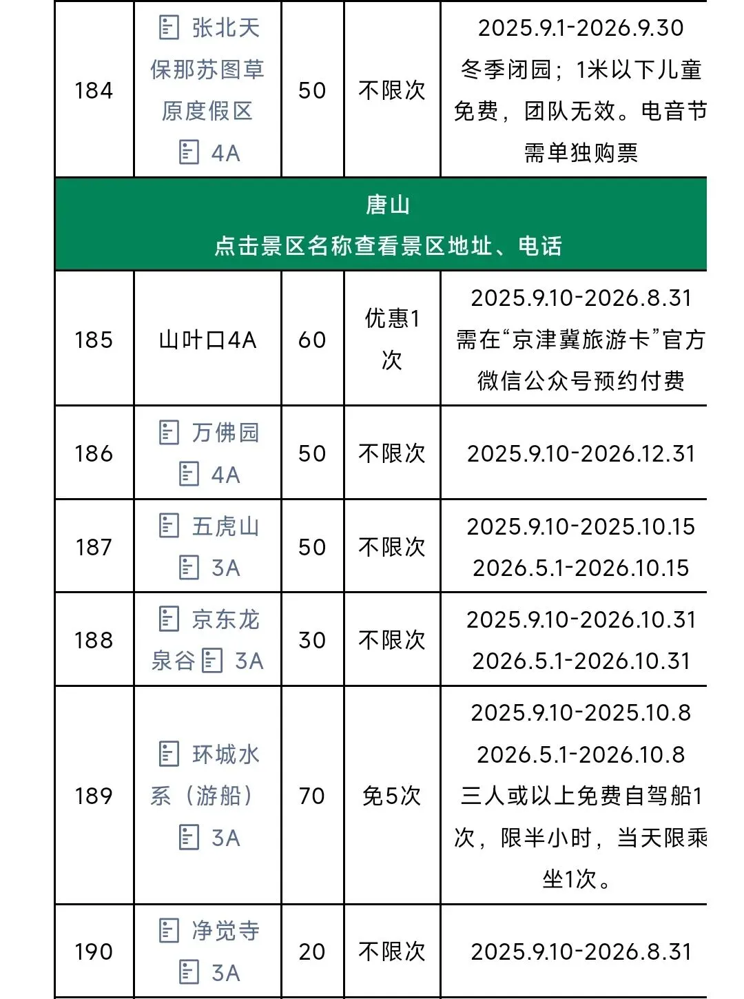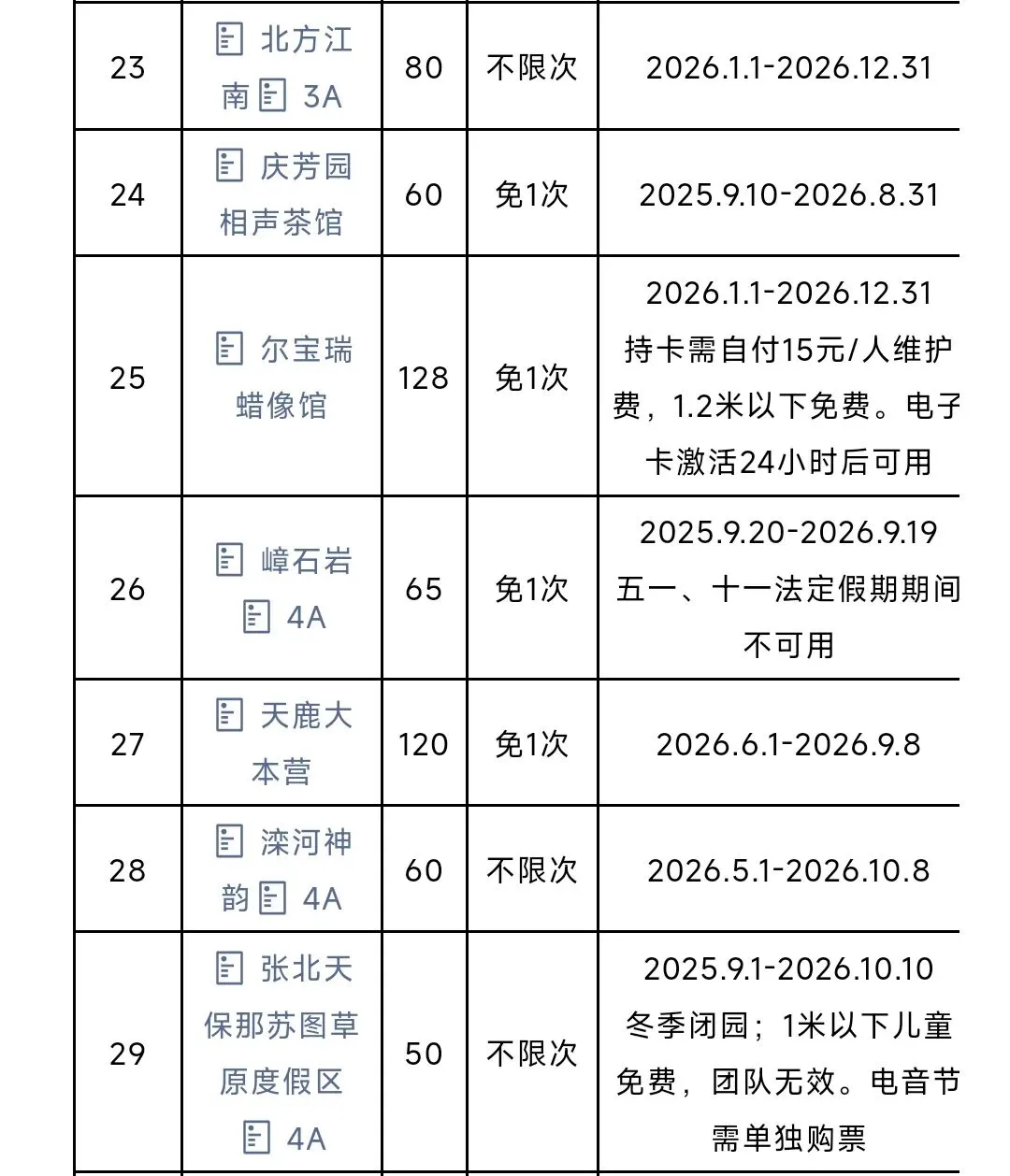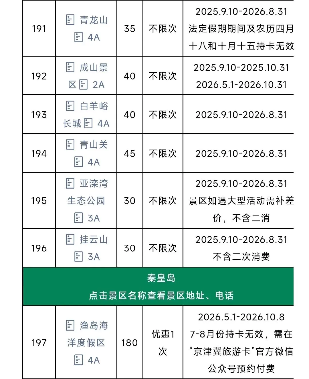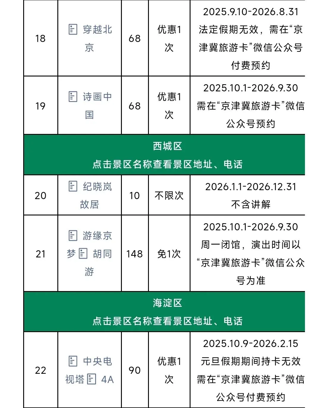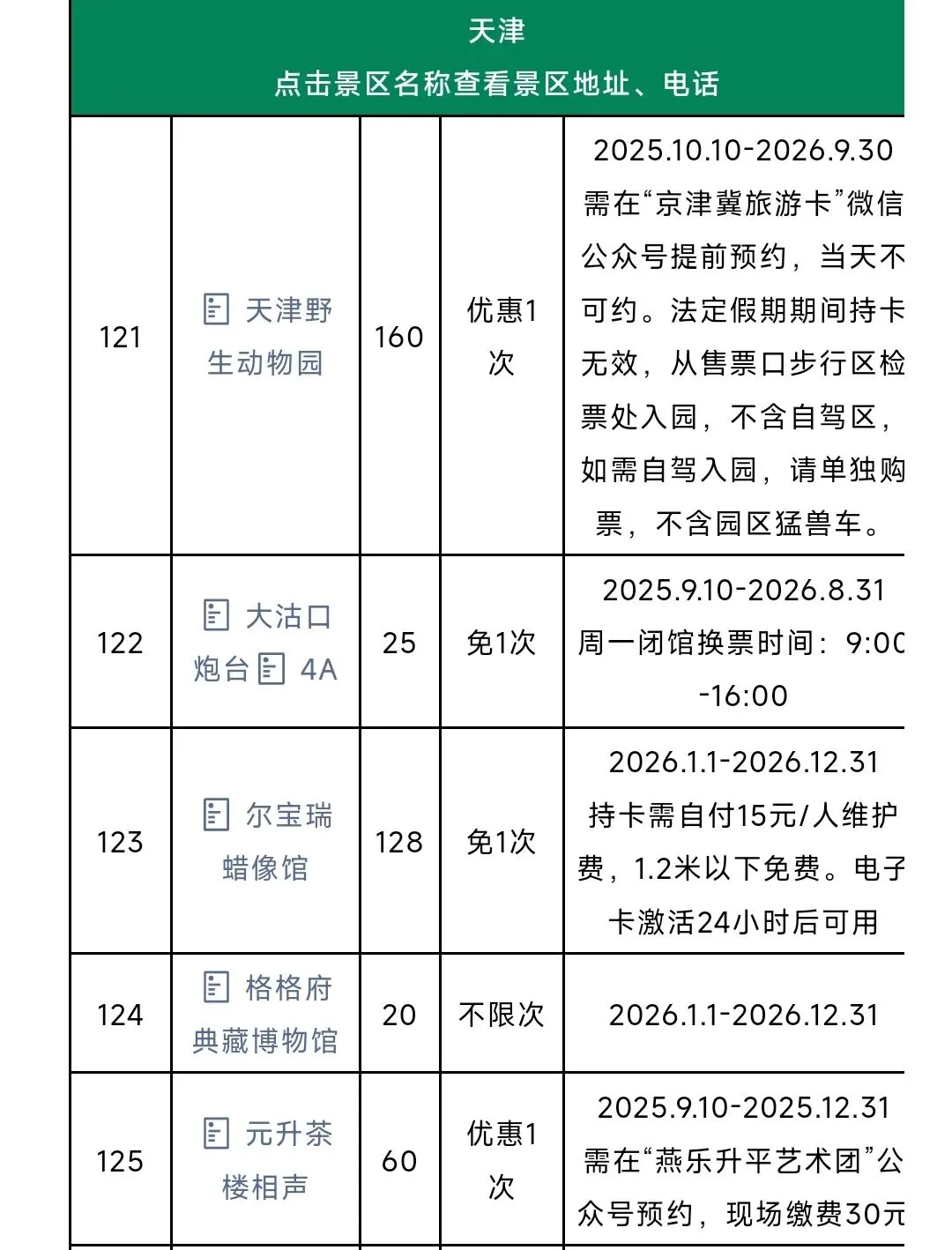 2026新版年票,京津冀旅游一卡通普通版景点目录,买一送一,99元到手2个,去一个就回本,简直太值了。
