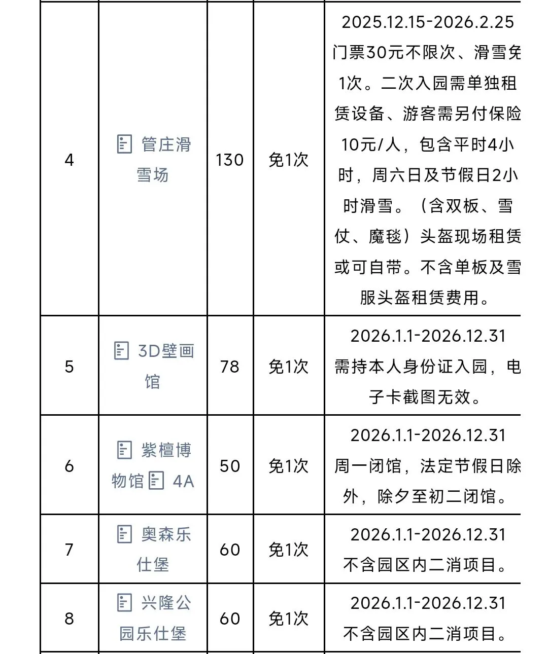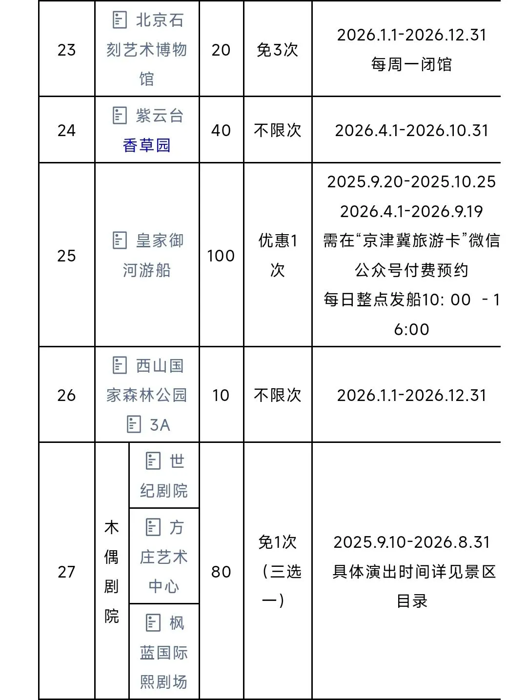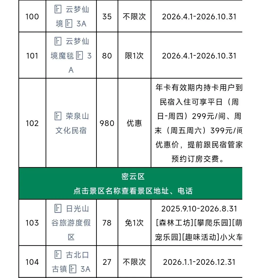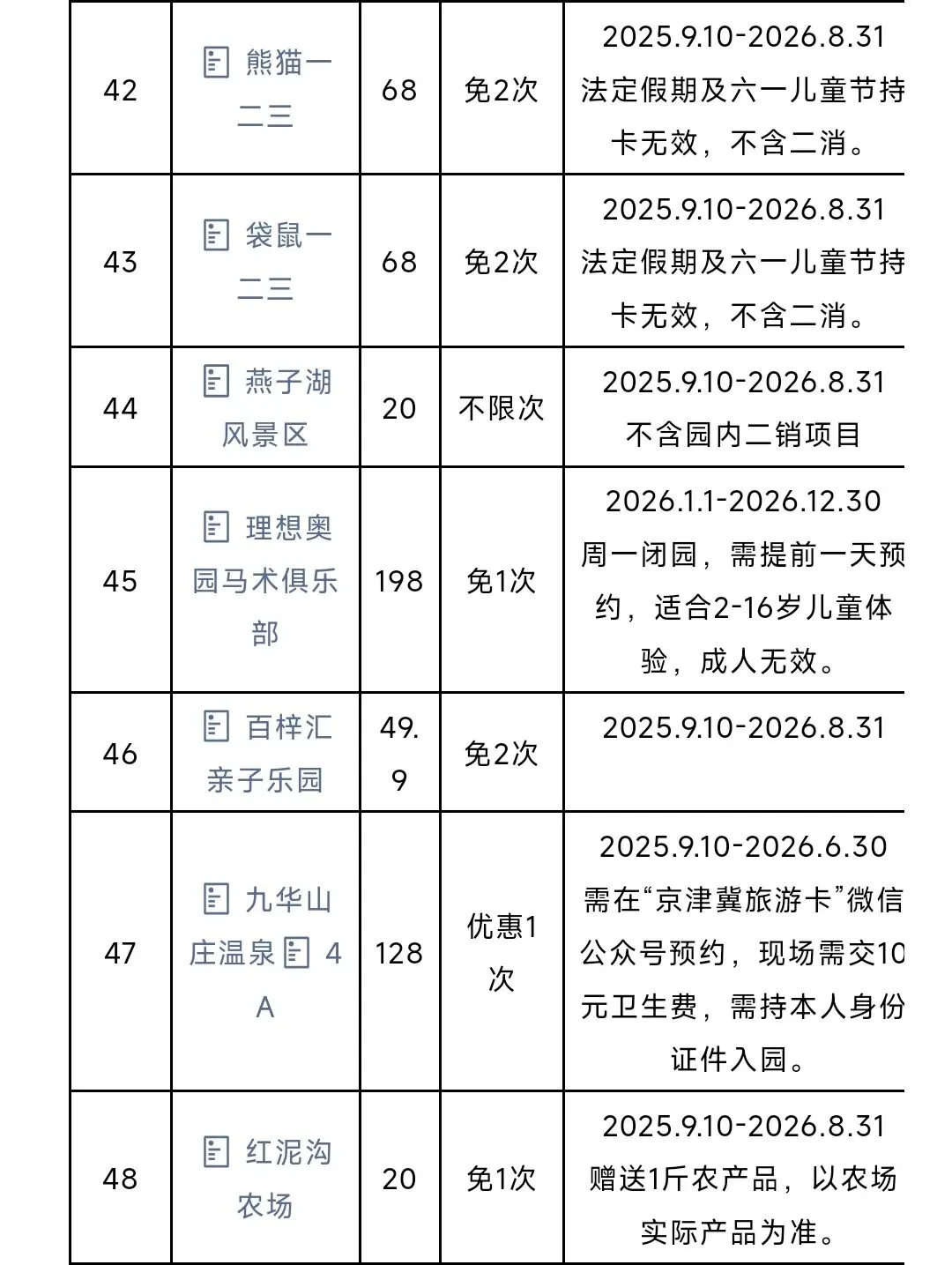 2026新版年票,京津冀旅游一卡通普通版景点目录,买一送一,99元到手2个,去一个就回本,简直太值了。