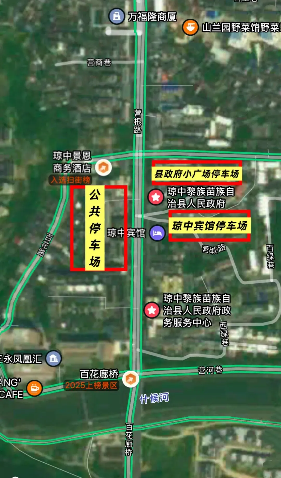 别急别急!琼中交警已经帮你们把所有停车问题都想到啦!我们整理了百花岭景区附近路段信息,在景区停车场停满之后,我们额外标注了两个停车集中点(包含2188个停车位)!这份保姆级攻略,就是要让您的春节之旅停车无忧,游玩更尽兴!
