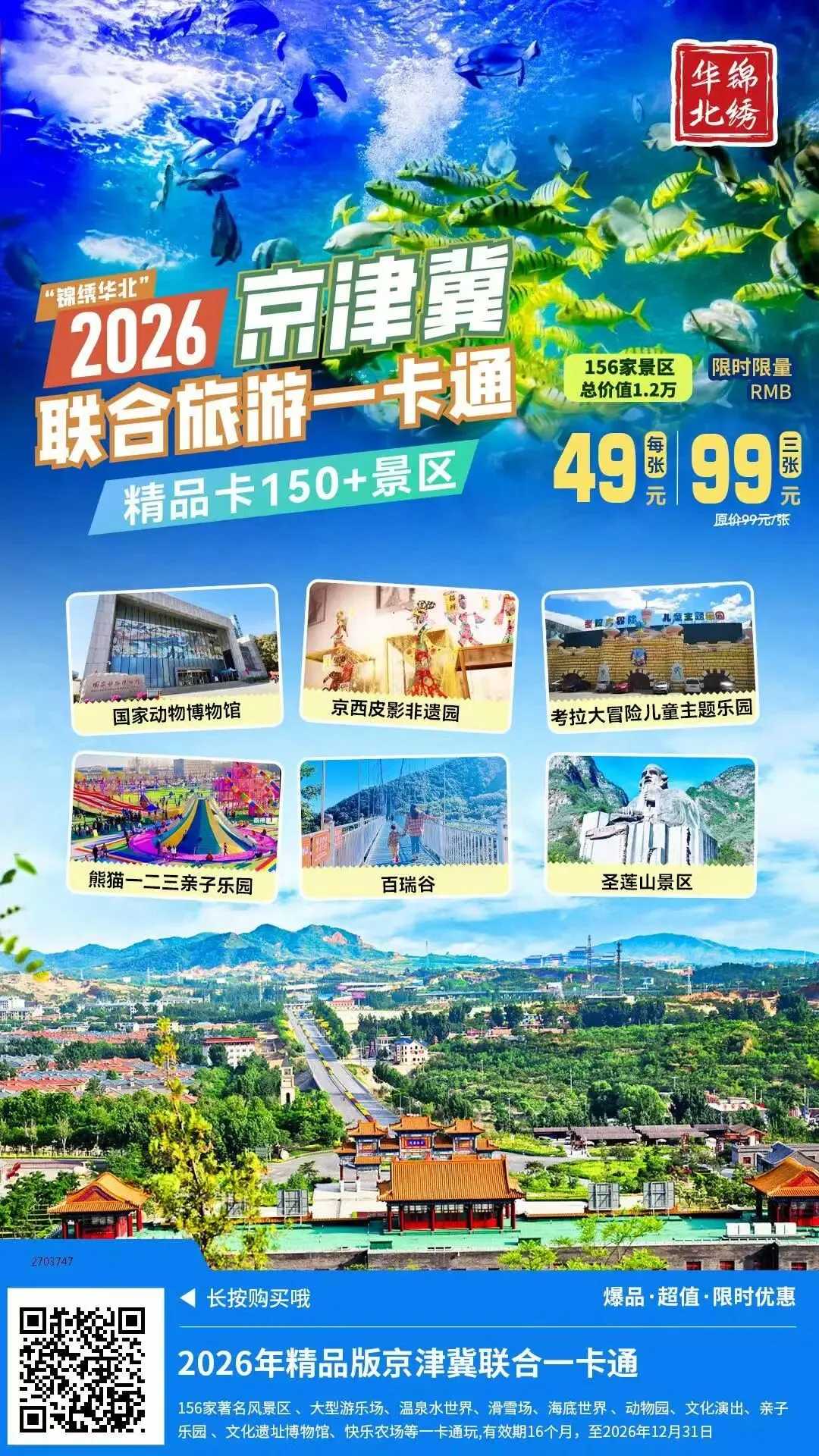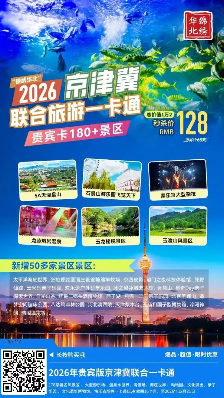 新春福利 | 春节假期可使用景区70多家,2026年锦绣华北旅游年票热卖中,不限制周末,省钱又省心!春节假期扶老携幼游玩必备!