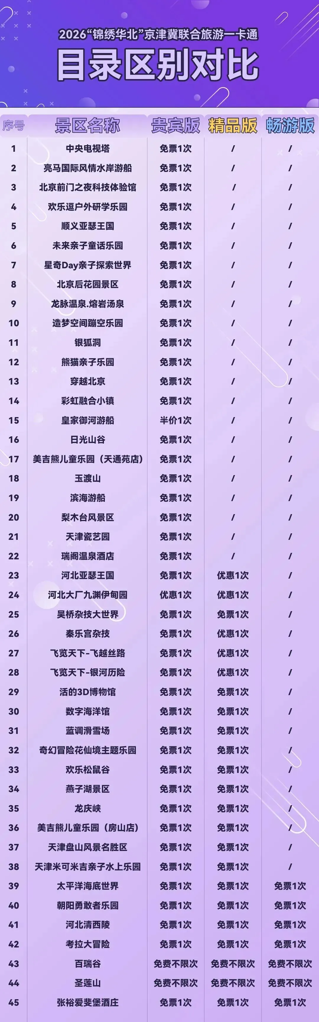 2026新版年票共包含京津冀178家景区,