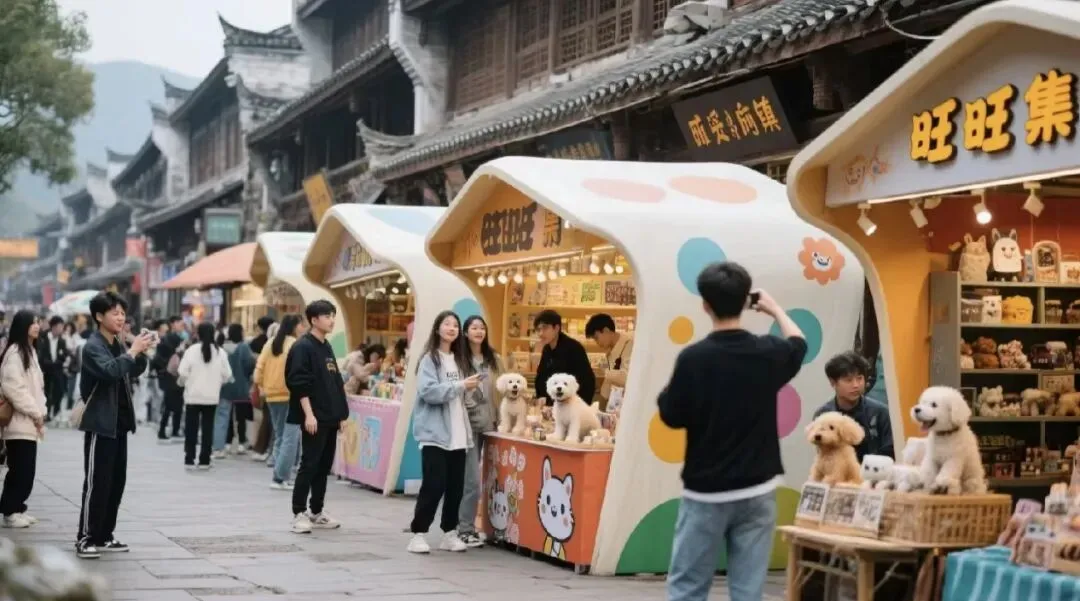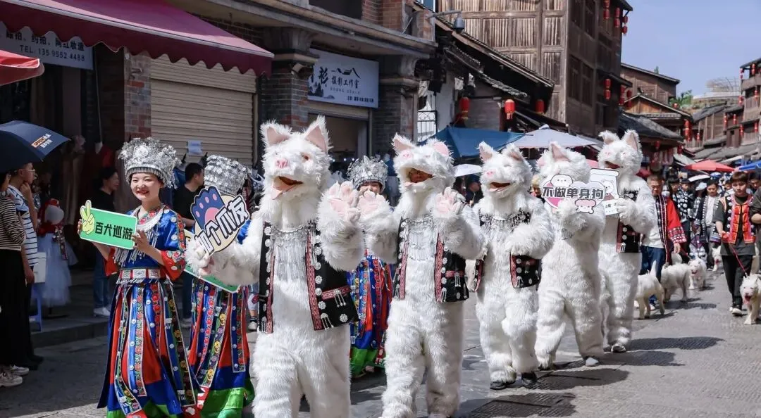 逛古街、遇旺旺,新的一年万事兴旺!超萌的旺旺人偶沿街巡游送福,互动拉满。