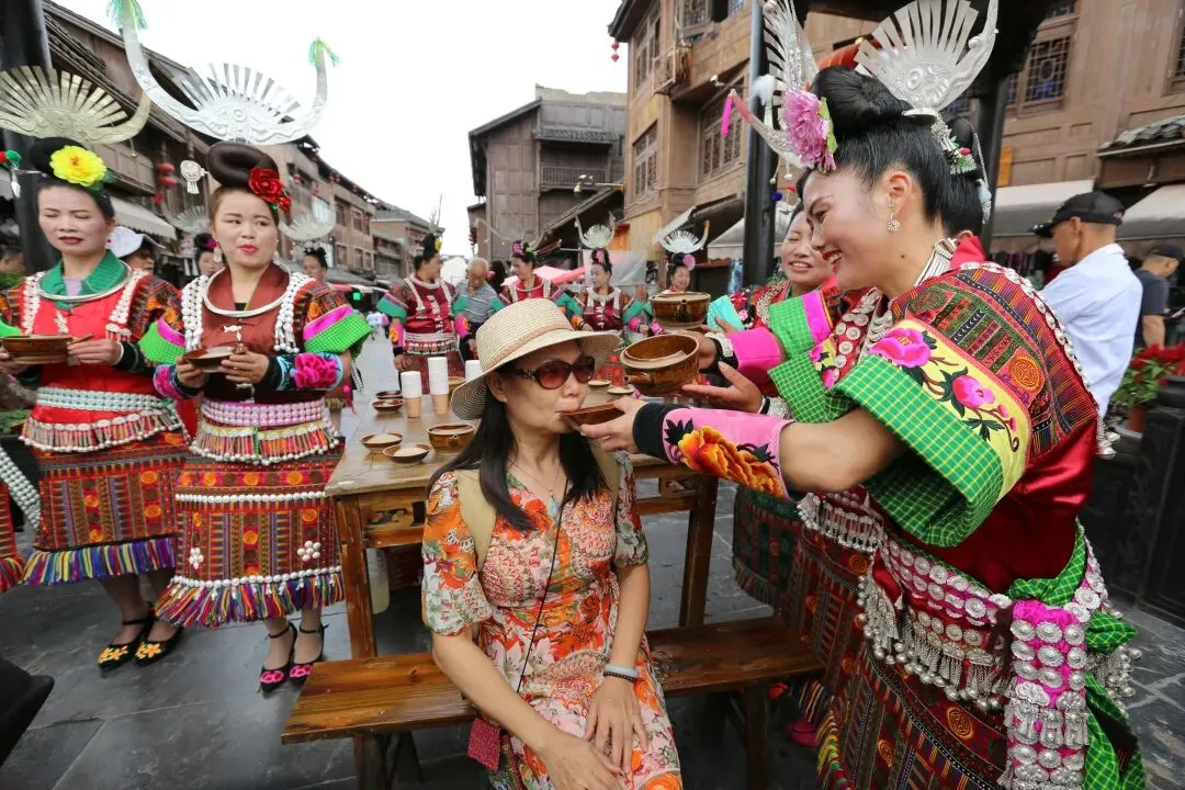 芦笙奏响,银饰叮当,春节的下司古镇,从牌坊就开始了少数民族热情的年味。身着盛装的苗家阿妹早已备好牛角杯,这不是酒,是迎接贵客的最高礼仪。对上一句祝酒歌,干了这碗拦门酒,解锁2026马年的第一份好运!