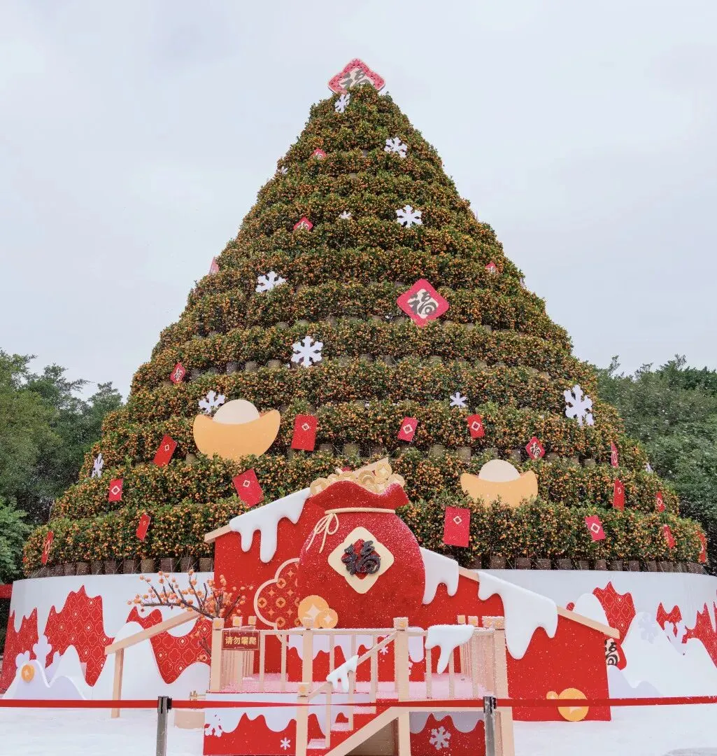 山上特色打卡点云集:天湖广场16.88米五福桔塔寓意吉祥,双子亭火山口飘雪走廊浪漫唯美;索道上站“雪诏・启程”打造岭南雪国,桃花园“雪兆春鸿”桃花映雪,鸿运大道年味十足。南门、北门、西门三大入口各具风格,沉浸式拍照、动感互动、福气满满,随手拍出大片。