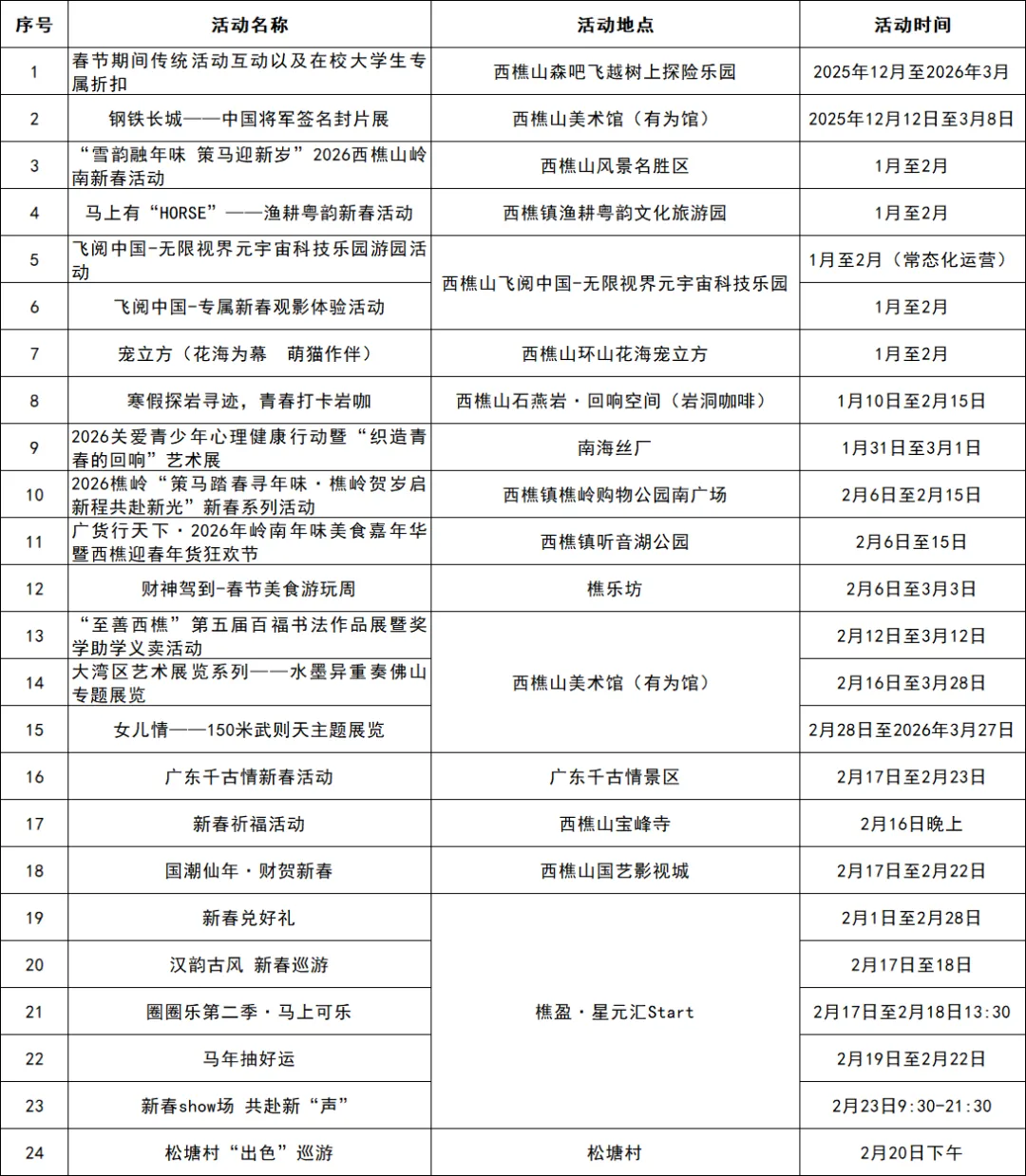西樵镇文体旅活动一览表